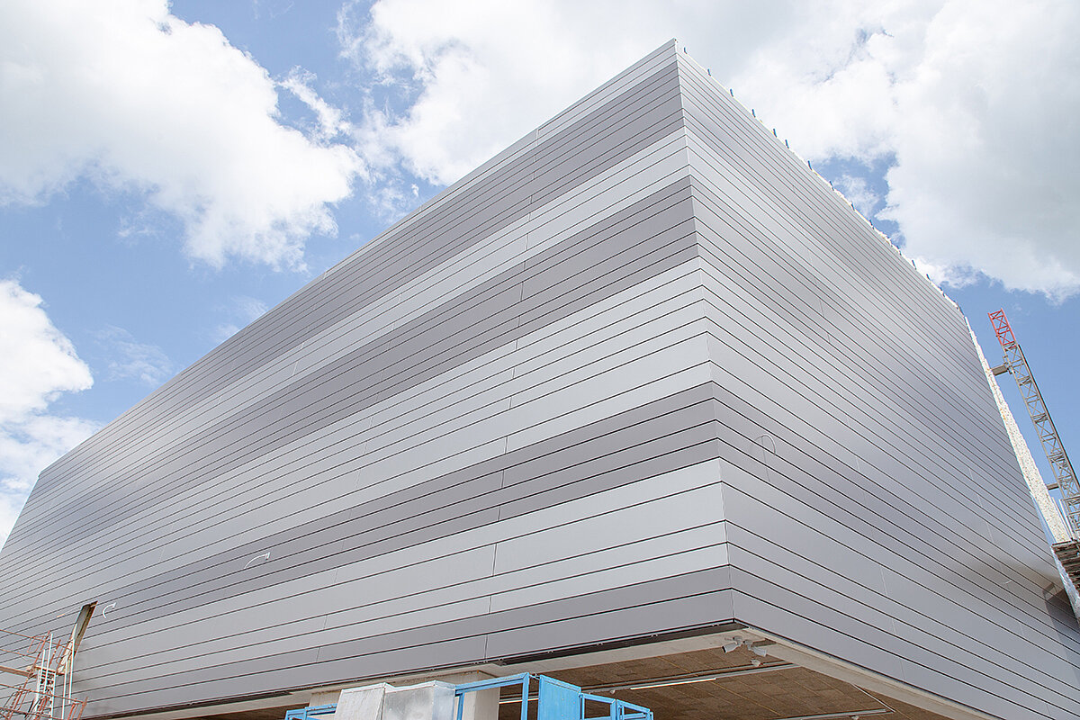 All diese Werte finden sich auch bei Domico. Das Unternehmen erzeugt an vier Produktionsstandorten hochwertige Dach-, Hallen- und Fassadensysteme aus Metall. Die Produktphilosophie des Herstellers steht nach eigenen Angaben für Nachhaltigkeit und technische Perfektion. Jedes Projekt wird individuell geplant und gefertigt. Aktuell werden jährlich 20 000 t Metall für die unterschiedlichen Dach- und Fassadensysteme verarbeitet. Auch das neue Starzinger-Logistikzentrum erhielt mit 4 200 m² Element-Dach, 3 700 m² »Planum«-Fassade und 4 425 m² Kassetten von Domico den Raum und Schutz, um zahllose Getränkepaletten für den Versand in über 40 Länder sicher zu organisieren.