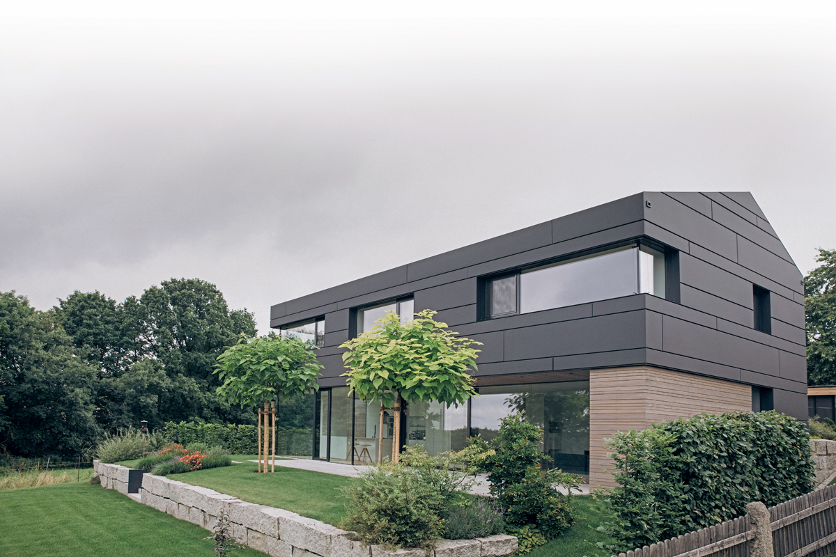 Es ist seit Jahren modern, die Fassade von Einfamilienhäusern mit großformatigen Fassadenprofilen zu verkleiden. »Metallelemente, ursprünglich aus dem Industriebau stammend, sind auch für private Bauherren eine Option«, erklärt Architektin Stephanie Reichl-Trinkner aus Parkstein (Oberpfalz). Die Metallfassade punktet mit moderner und zeitloser Optik und auch der Anspruch an Nachhaltigkeit und Langlebigkeit wird erfüllt.