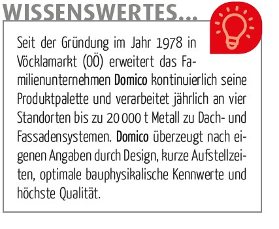 Um zusätzliche gestalterische Effekte zu erzielen, wurden Teilbereiche mit einer Domico Swing-Fassade kombiniert. Unterschiedliche Profilbreiten bis 800 mm und Verlegemöglichkeiten sowie Kombinationen mit anderen Domico-Profilen bieten Architekten zusätzliche Gestaltungsmöglichkeiten.