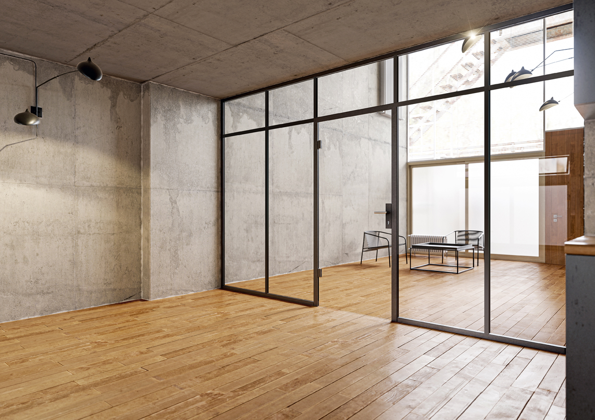 Große, mit Sprossen unterteilte Fensterflächen sind häufig ein typisches Merkmal ehemaliger Industriegebäude. Was in der Vergangenheit zweckmäßige Architektur war, hat sich heute zu einem Trend entwickelt, der weit über die Umnutzung dieser alten Gebäude hinausgeht. »Uniquin«, das Trennwandsystem von Dorma-Glas, überträgt diesen Industrie-Look aus der Fassade nun auch auf die Gestaltung von Raumtrennungen und Türen aus Glas.