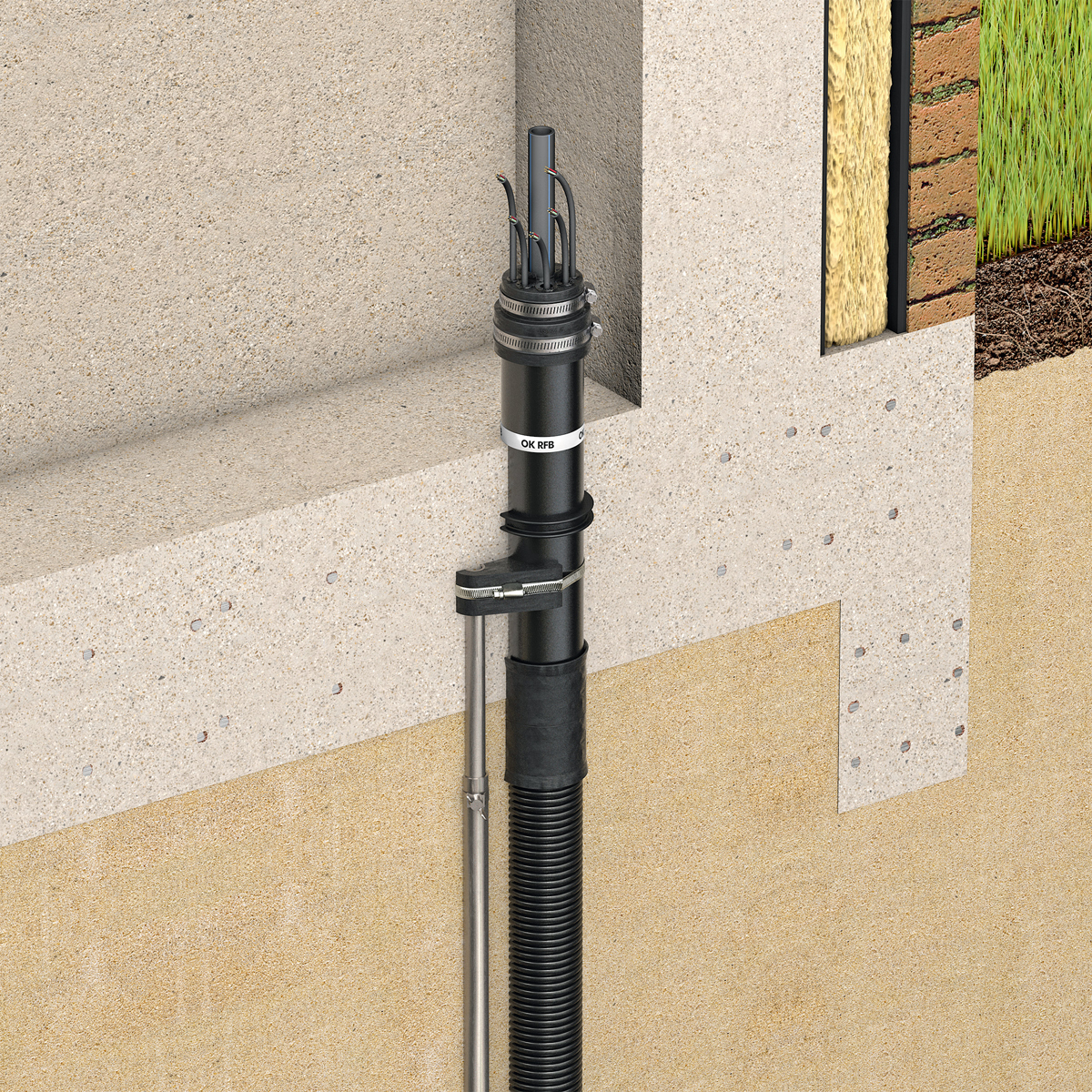 Bauherren erhalten sich mit dem Einbau der »Conny« höchste Flexibilität: Egal, ob es darum geht, irgendwann einmal das Gartenhaus zu elektrifizieren, Gartenbeleuchtung anzuschließen, eine Wallbox zu installieren oder eine Ladestation für E-Bikes bzw. den Mähroboter mit Strom zu versorgen: Mit »Conny« gelingt dies ganz einfach. Auch die Wasserversorgung von Poolanlagen oder zur Bewässerung des Gartens kann auf diese Weise einfach und schnell umgesetzt werden. Je nach Anwendungsfall werden die erforderlichen Versorgungsleitungen einfach durch die Hausausführung und ein angeschlossenes flexibles Mantelrohr »DN75« nach draußen verlegt – und zwar laut Doyma gas- und wasserdicht und vor allem, ohne dass bauliche Veränderungen am Haus notwendig werden.