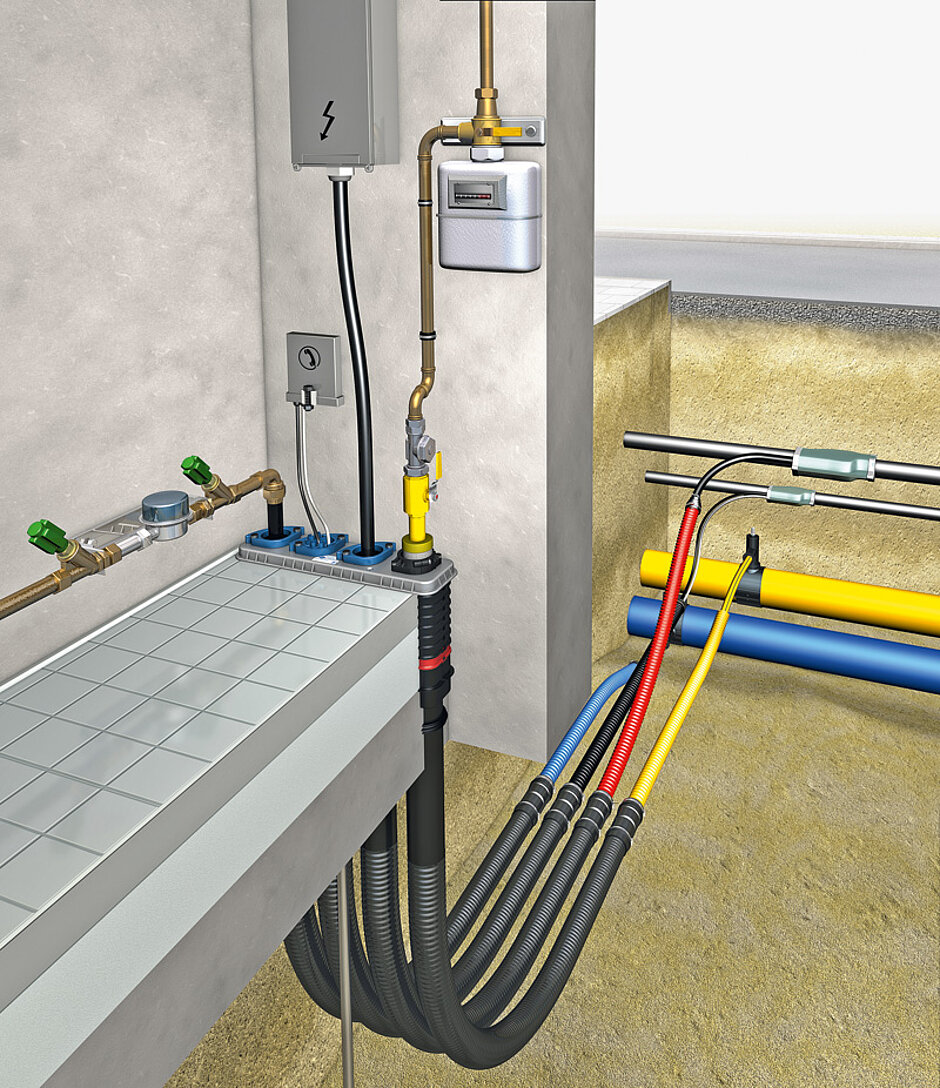 Dadurch, dass alle erforderlichen Komponenten – auch die Abdichtung für das Gasgewerk (RMA und Schuck) im Set enthalten sind – kann termingerecht gearbeitet werden. Darüber hinaus ist eine flexible Belegung der einzelnen Sparten – unabhängig vom Baufortschritt – und auch ein späteres Relining möglich. Das »Bauherrenpaket All inclusive« für nicht unterkellerte Gebäude beinhaltet eine Abdichtung für die Entsorgungsleitung. Auf alle Bauherrenpakete gewährt Doyma 25 Jahre Garantie. J