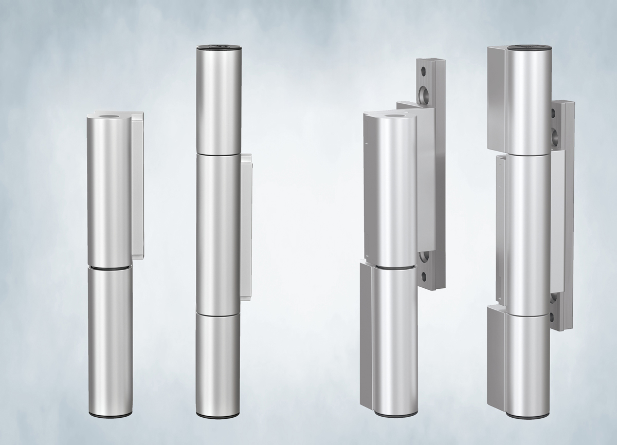 Unscheinbar wirken hingegen die Rollenbänder aus Mönchengladbach mit ihrer Bandrolle von 20 mm Durchmesser. Immer mehr Verarbeiter entscheiden sich für das »Hahn Rollenband AT«, um das Band so dezent wie möglich einzusetzen. Es ist in sechs Richtungen justierbar. Die Verstellung erfolgt im Inneren der Bänder. Selbst bei kompletter Ausnutzung der Verstellwege bleibt die formschöne Bandkontur erhalten. Das weitestgehend vormontierte Band ist schnell und unkompliziert zu montieren. Ein einteiliger Lagerbolzen aus Edelstahl sorgt für eine hohe Stabilität. Dieser ist so ausgelegt, dass der Türflügel auch bei niedrigem Sturz problemlos entfernt werden kann. Je höher der Designanspruch des Auftraggebers, umso eher greift der Türenbauer zum systemangepassten Türband.