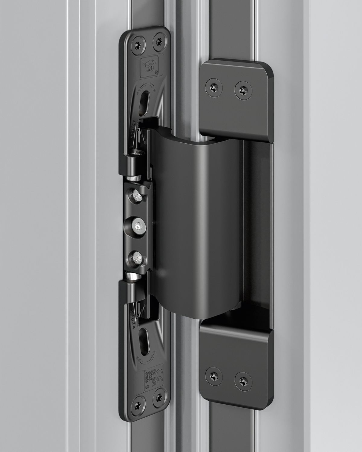 Das neueste Produkt im Sortiment ist das »Hahn VL-Band AT«. Schnell in der Verarbeitung, komfortabel auf der Baustelle und einfach zu verstellen, das sind die technischen Vorteile des Bandes. Das Band bewegt beim Einsatz von zwei Bändern Flügel bis zu 180 kg, je nach Ausführung der Profile. Über speziell ausgeformte Tragarme lässt sich das Band zusammenfügen. Der Flügel kommt so direkt in seine Endposition und muss zur Montage nicht zusätzlich abgestützt werden. Die stufenlose Justierung in sechs Richtungen kann von einer Person am eingehängten Flügel erfolgen. Die Demontage auf der Baustelle ist besonders einfach. Lediglich eine Sicherungsschraube pro Band muss gelöst werden, damit sich der Flügel ohne Spezialwerkzeug ausheben lässt.