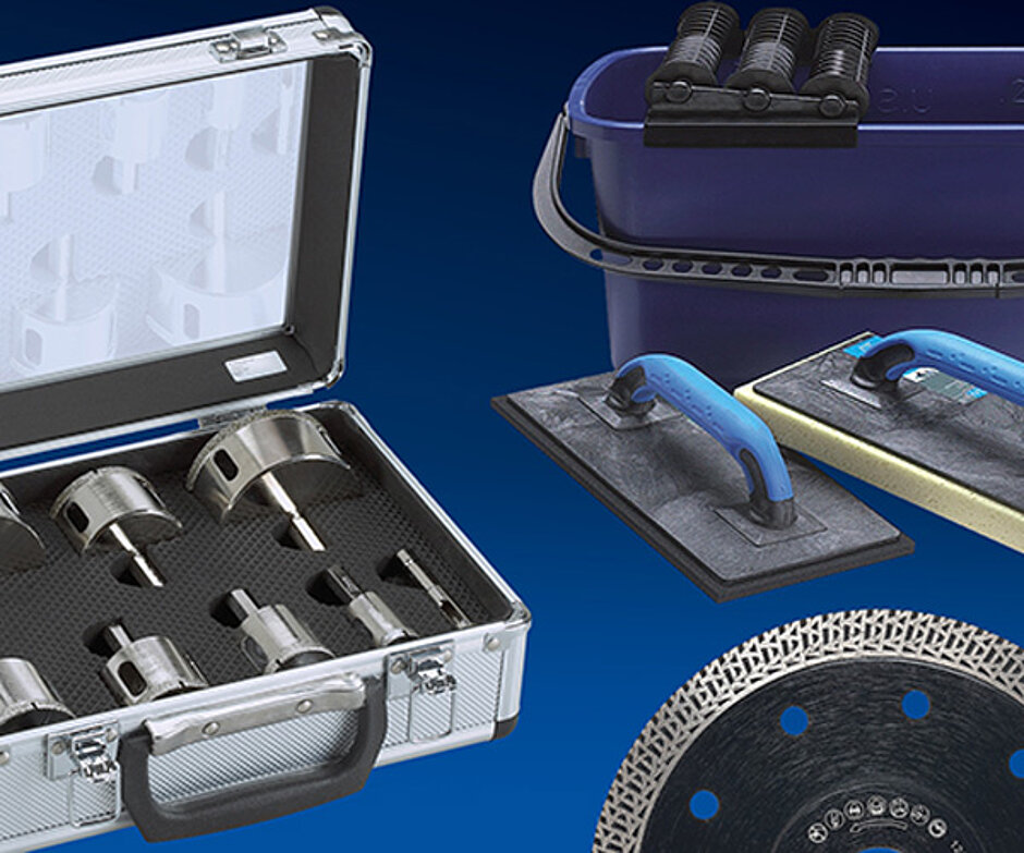 Die Produktpalette umfasst neben klassischen Bedarfsartikeln wie Schwamm- und Fugbrett, Hämmer, Wendelrührer und Zange auch eine umfangreiche Auswahl an Spezialwerkzeugen für alle Bereiche der Fliesenverlegung: Sowohl Farbroller und Breitspachtel zur Vorbereitung des Untergrundes als auch Glättekellen, Gehrungsscheren und Plattenheber sind in unterschiedlichen Ausführungen erhältlich. Eine große Auswahl an Diamant-Trennscheiben, Diamant-Bohrkronensätzen, Rollwaschsets und Fliesenkreuzen sowie Arbeitsschutz in Form von Knieschonern, Rollbrettern, Gehör- und Augenschutz ergänzt das Sortiment. Die Werkzeuge und Verleghilfen können unkompliziert im Fliesen- und Baustoffhandel ausgewählt und mitgeordert werden – beispielsweise als Ergänzung zur Profil- und Leistenbestellung. So könne man unnötige Fahrwege vermeiden und die Arbeit auf der Baustelle erleichtern.