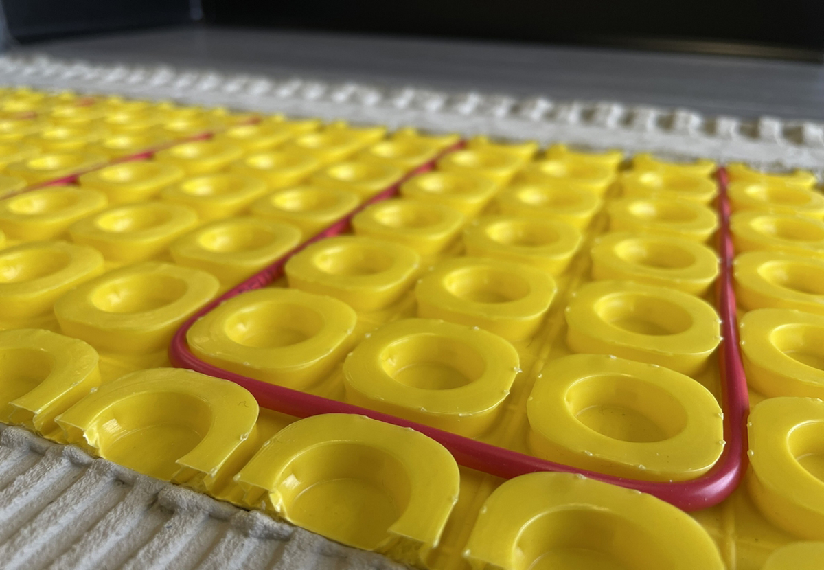 Den dritten Schwerpunkt setzt Dural auf die Mattensystemen zur Entkopplung, Abdichtung, Armierung, Drainage und Trittschalldämmung. Die neue Entkopplungsmatte Durabase CI-H ist für die Aufnahme von elektrischen Heizkabeln prädestiniert. Zusammen mit den Heizungslösungen Devi des europäischen Herstellers Danfoss lassen sich so in kurzer Zeit Fußbodenheizungen verlegen, die auch mit Ökostrom aus einer Photovoltaikanlage betrieben werden können. Die Matte ist für den Neubau und die Renovierung geeignet, kompatibel sowohl mit Nass- als auch Trockenbau und hat eine geringe Aufbauhöhe von sechs mm. Auf der Messe wird eine große beheizte Fläche am Stand gezeigt.
