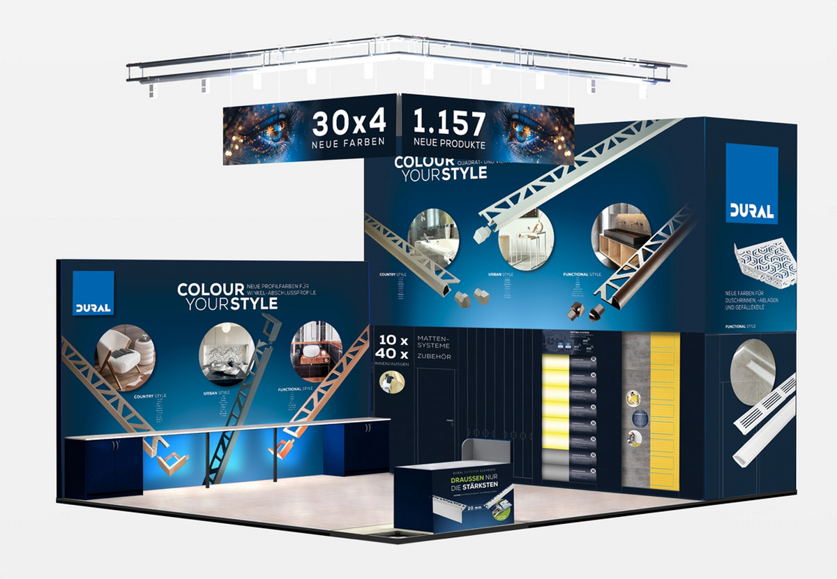 Ebenso dürfen sich Besucher auf die Dural Outdoor Elements für Balkon und Terrasse freuen. An praxisorientierten Verlegebeispielen können sich Interessierte am Stand über komplette Systemaufbauten mit den dazugehörigen Produkten informieren. An jedem Messetag finden dazu mehrere Live-Vorführungen statt. Mit dabei sind Systeme zur entkoppelnden Abdichtung, zur Drainage und Entwässerung sowie Abschluss- und Stirnseitenprofile für Terrasse und Balkon. Das neue Stelzlager Flexibal pro mit drei Aufbauhöhen gleicht Höhenunterschiede von bis zu einem Meter flexibel aus. Das neue Wendeprofil Durabal BF für fest verlegte Balkon- und Terrassenbeläge mit einer Höhe von 11/22 beziehungsweise 11/36 mm ergänzt das System. Mit dem praktischen Online-Konfigurator für das Stelzlager-System gelingt zudem eine einfache Planung der Terrassenfläche mit allen benötigten Produkten – mit und ohne stabilisierendes Schienensystem. Zur Verkaufsförderung werden zahlreiche Hilfsmaterialien wie wetterfeste Mustertafeln für Outdoor-Ausstellungen im Handel, Musterkoffer für Planer, Objekteure und Verarbeiter sowie weitreichende Systeminformationen on- und offline am Start sein.