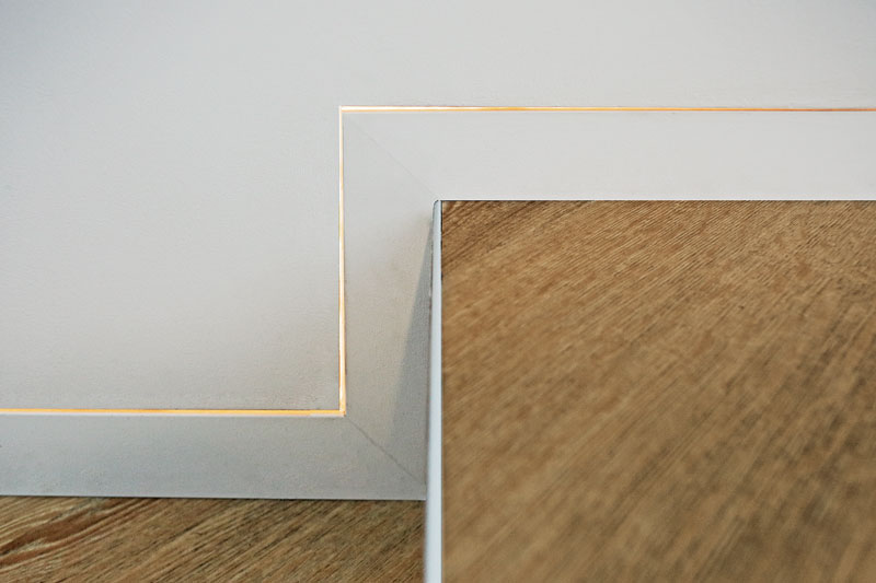 Für die Sockelleiste wird im Wandfußbereich eine Aussparung zur Anbringung der Aluminiumprofile vorgesehen. Diese Arbeit erfolgt vor den Verputzarbeiten, beziehungsweise vor der Befestigung von Gipskartonplatten und der Bodenverlegung.