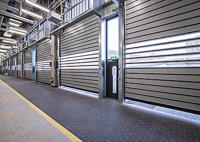 Das sehr wartungsarme Tor verfügt unter anderem über eine aufklappbare Verblendung und abnehmbare Kabelabdeckungen, was Service und Wartung deutlich vereinfacht. Das Torblatt besteht aus flexiblem PVC. Der Antrieb kann individuell konfiguriert werden und ist, je nach Variante, in 45°-Schritten drehbar. Durch die transparenten Zargendeckel ist es außerdem möglich, LED-Leisten in die Zargen zu integrieren, womit eine Ampelfunktion realisierbar ist. Das Tor ist in Standard-Baugrößen bis zu einer Breite von 3 500 mm und einer Höhe bis zu 3 500 mm lieferbar.