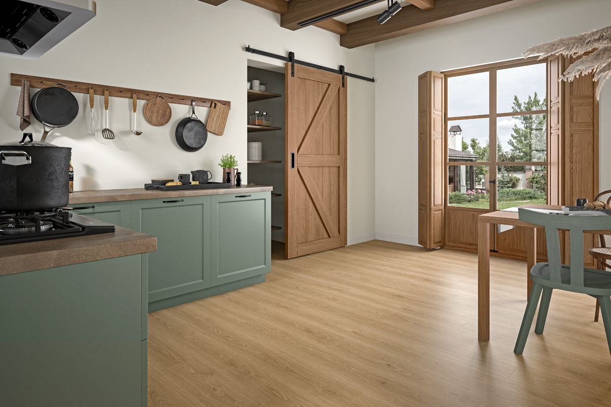 Die neuen Egger-Interior-Styles zeigen Einrichtungs- und Wohntrends in vier Stilrichtungen: Bei »Live Natural« dominieren beruhigende Grün- und Naturtöne in Kombination mit organischen Materialien. »Stay Timeless« verbindet mit zeitlosen Designs mühelos Altes und Neues miteinander. Neben eleganten Holzdekoren dominieren klassische Materialien wie Marmor oder Terrazzo. »Create Vintage« belebt vergangene Zeiten neu. Klare Linien und leuchtende Farbakzente setzen die Schönheit von Vintage-Möbeln und retro-inspirierten Dekoren modern in Szene. »Be Simplistic« schließlich schafft eine minimalistische Ästhetik, die eine raffinierte Gelassenheit verkörpert. Ein weiteres beliebtes Gestaltungskonzept heißt »Interior Match« und umfasst aufeinander abgestimmte Designs von Türen, Möbeln und Fußböden.