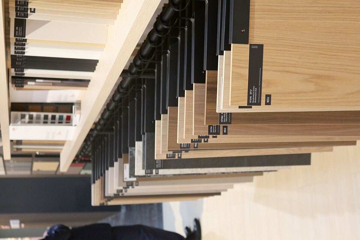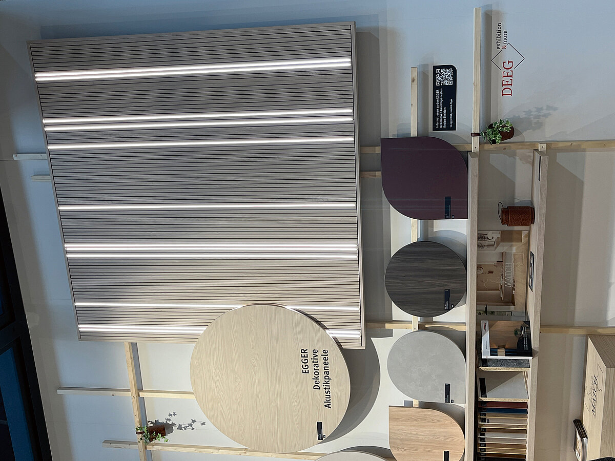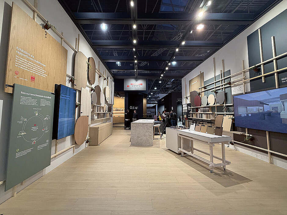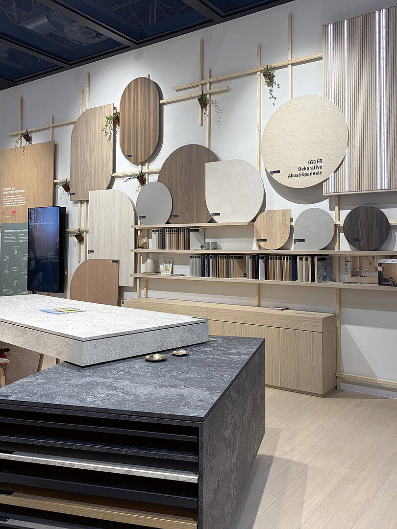 Neben den Oberflächen- und Strukturneuheiten sorgte auch ein neues Servicekonzept für Aufmerksamkeit: Mit »TrendCast« vereint der Holzwerkstoffhersteller Design und Technologie mit der Möglichkeit, Trends und gestalterische Konzepte in virtuellen Räumen zu visualisieren. Während bei herkömmlichen Kundenpräsentationen oft nur kleinere Handmuster gezeigt werden, ermöglicht »TrendCast« ein immersives Erlebnis, bei dem zusammen mit Kunden in die feinen Details der verschiedenen Dekore und Strukturen eingetaucht werden kann. Die Möglichkeit, ein reales Muster in der Hand zu halten und gleichzeitig seine Wirkung großflächig und in verschiedenen Szenarien zu erleben, schafft eine neue Tiefe in der Dekorberatung. »TrendCast« steht exemplarisch für die digitale Weiterentwicklung des Servicegedankens bei Egger.