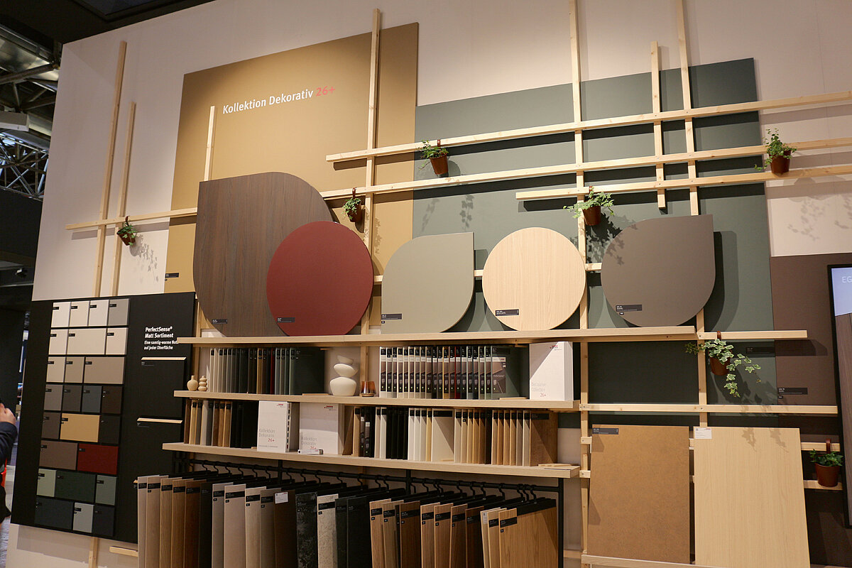 Egger setzt bei der Kollektion »Dekorativ 26+« für Möbel und Innenausbau erstmals auf ein zweijährig rollierendes Kollektionskonzept, um flexibel auf Trendentwicklungen sowie sich verändernde Marktbedürfnisse einzugehen. Alle Neuheiten bleiben mindestens vier Jahre im Sortiment. Neue Unifarben, vor allem bei der Trendfarbe Beige, lineare Hölzer im italienischen Stil, Erweiterungen im Farbspektrum der matten »PerfectSense«-Oberflächen, das neue rapportlose Halbformat für authentische Holzreproduktionen und eine neue matte Allover-Holzstruktur sind nur einige der Neuheiten.