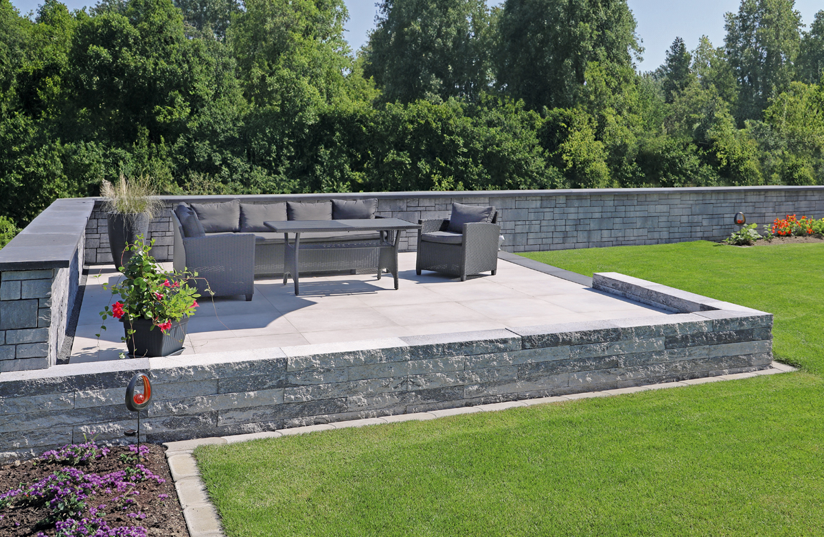 Mit seinen modernen Farben und vielfältigen Einsatzmöglichkeiten präsentiert sich »Larento« als der Allrounder unter den Steinen. In grau-anthrazit-nuanciert, anthrazit und muschelkalk bietet »Larento« eine scharfkantig gebrochene Optik auf einem horizontalen Mauerformat von 80 x 25 x 10 cm. Dieser langförmige Stein eröffnet kreative Möglichkeiten für die Gartengestaltung. Ob Grundstückseinfassungen, Terrassierungen oder freistehende Sichtschutzwände – »Larento« erfüllt alle Anforderungen. Zusätzlich kann dieser Mauerstein auch als Randstein verwendet werden. Durch seine wassergestrahlte Oberfläche benötigt diese Mauer keine zusätzliche Abdeckplatte.