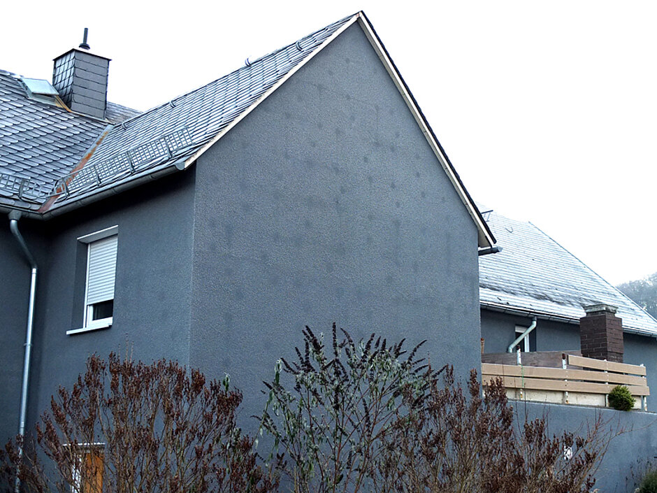 Die hellen Flecken hingegen sind in der Regel die Folge von unterschiedlichen Wärmespeicherkapazitäten oder Wärmeleitfähigkeiten der Komponenten. Die Kombination aus Dübelteller und Putzbeschichtung speichert die Wärme länger als die ungestörte Putzfläche. Dieser Bereich trocknet somit schneller ab. Die übrige Fassadenfläche bleibt länger feucht und kann damit über einen längeren Zeitraum Schmutz ansammeln, der Bereich oberhalb der Dübelteller bleibt hell.