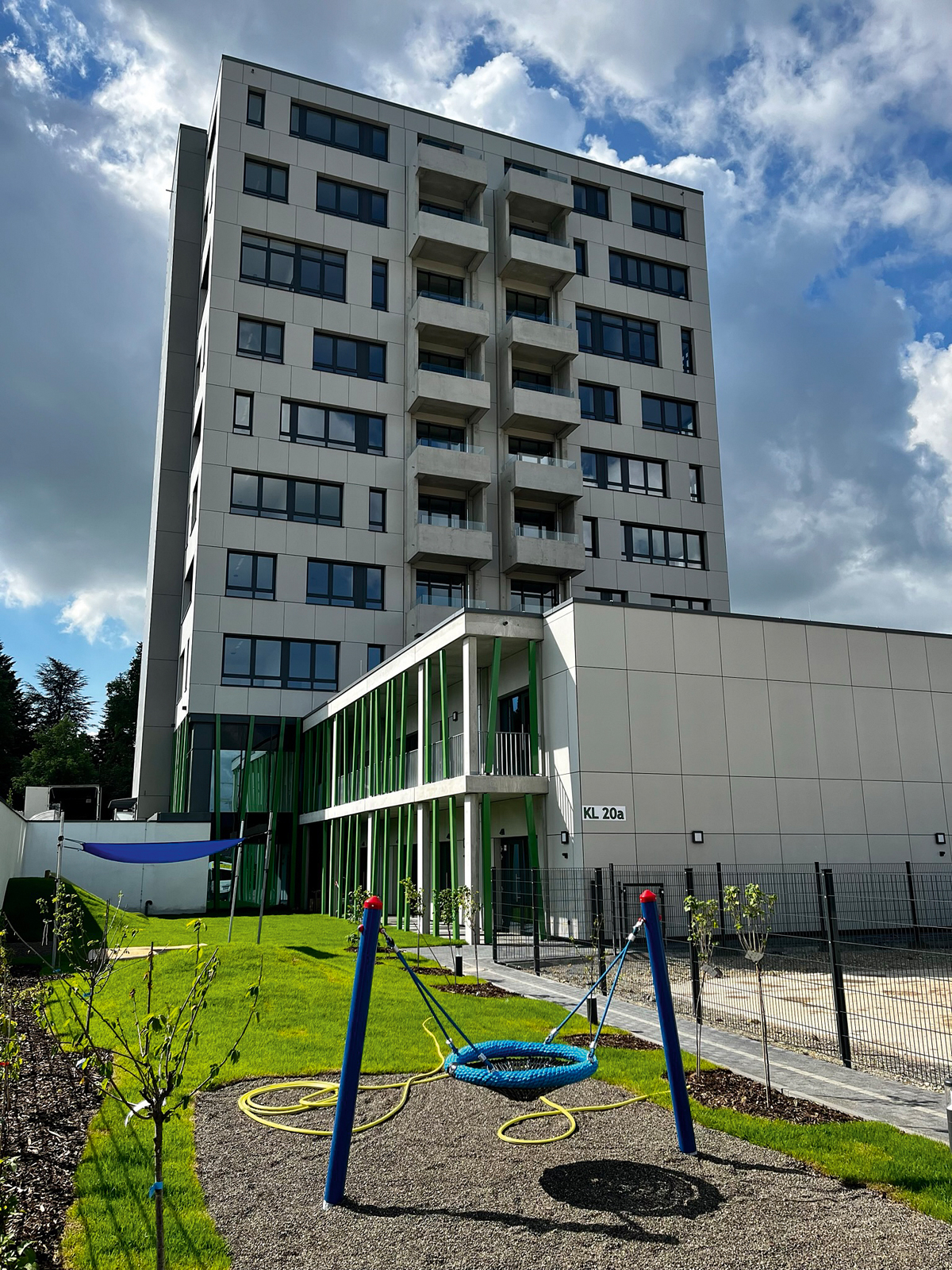 In Göttingen wird zur Zeit ein siebenstöckiges Gebäude, der sogenannte Göttingen-Tower, saniert. 1975 von dem bekannten, aus Göttingen stammenden Architekten und Stadtplaner Jochen Brandi (1933 – 2005) geplant und errichtet, steht das Gebäude seit Jahren leer. Jetzt wird es kernsaniert. In den oberen Stockwerken entstehen Eigentumswohnungen, im Parterre ein Kindergarten. Elapro stellt für die absolut lösemittelfreie und geruchsneutrale Flüssigabdichtung seine umweltfreundlichen Flüssigkunststoffe zur Verfügung.