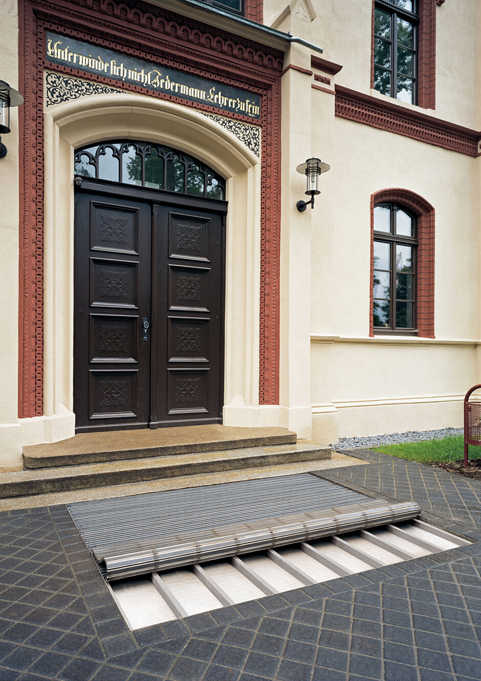 Als besonders leistungsfähige Alternative zu den emco Schmutzfangwannen sorgen drei verschiedene Unterkonstruktionen dafür, dass bei besonders langen Reinigungsintervallen selbst extremer Schmutzanfall zu bewältigen ist. Der Vorteil dieser Unterkonstruktionen ist, dass gegebenenfalls bestehende Höhenunterschiede im Unterbau ausgeglichen werden können. J