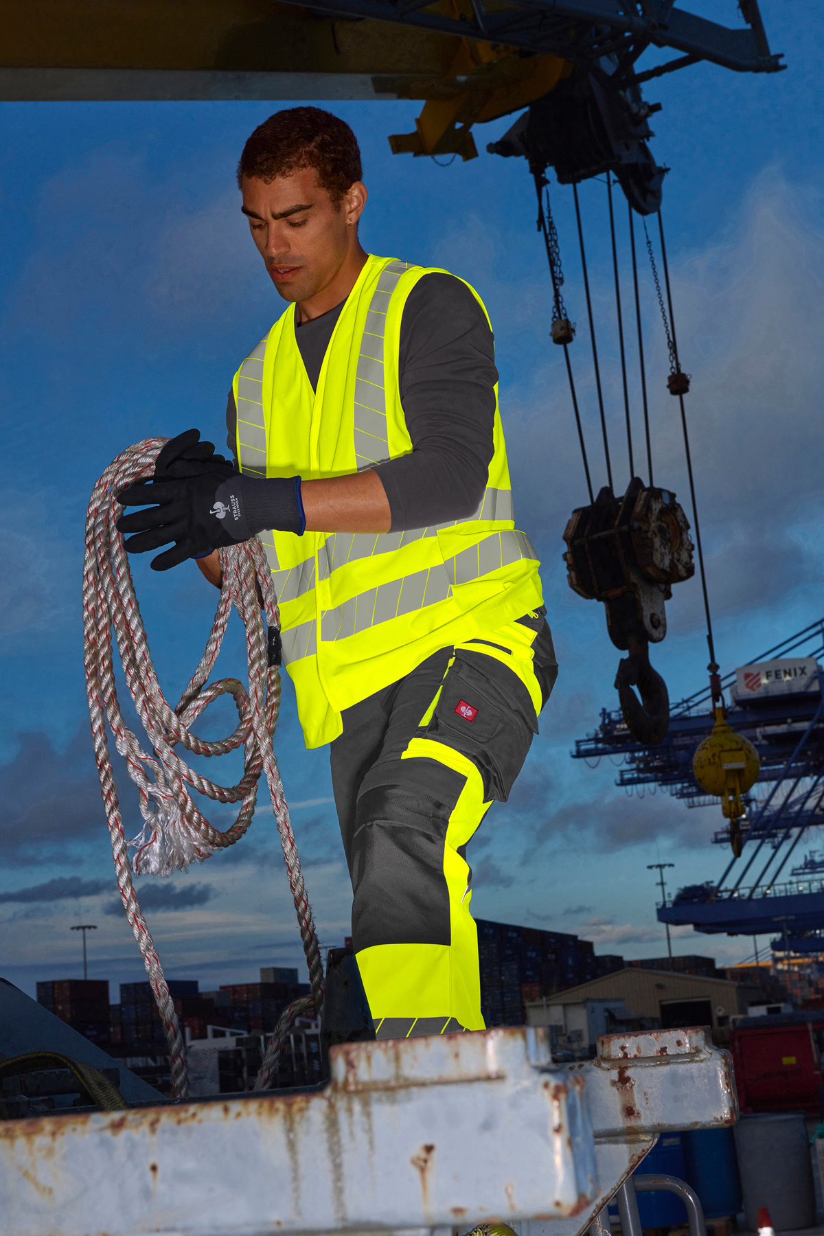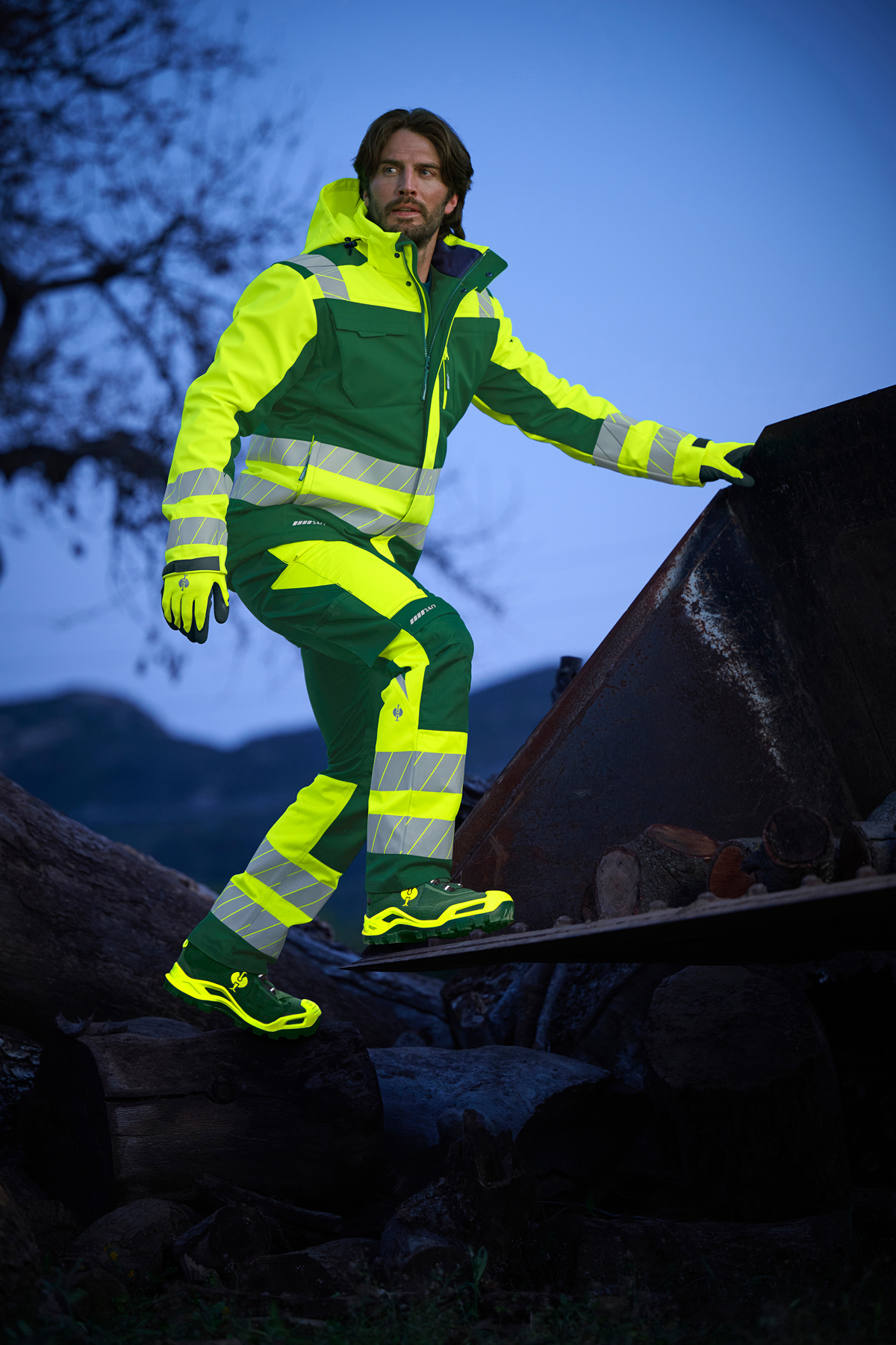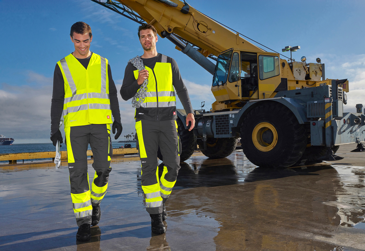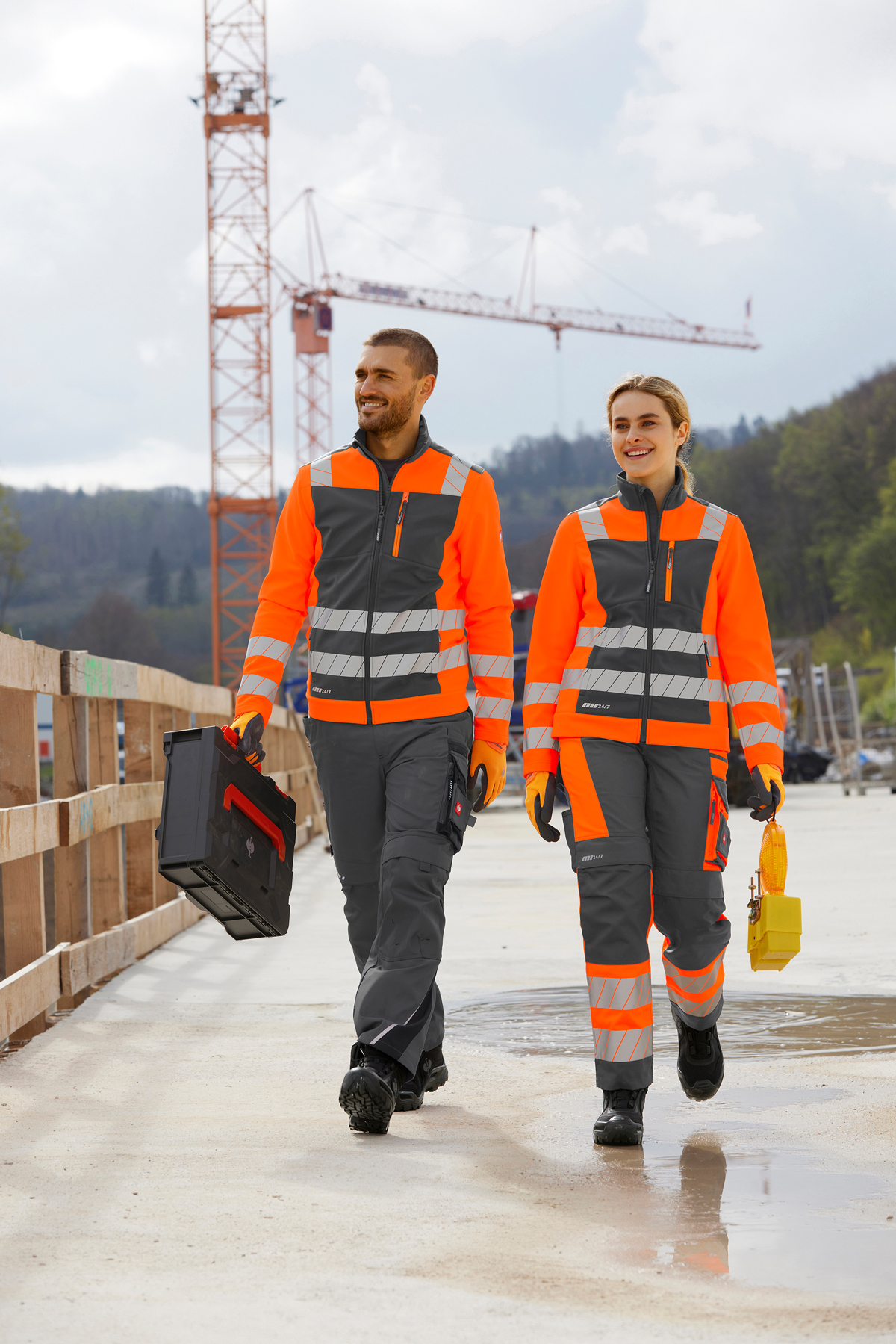 Es gibt Situationen, in denen gesehen werden Leben rettet: In der Logistik und bei Lagerarbeiten, wenn Stapler, Hubwagen und LKWs den Weg kreuzen, auf der Baustelle, bei Arbeiten mit schwerem Gerät, Be- und Entladen von Fahrzeugen. Auch der Arbeitsweg in der Dämmerung oder Dunkelheit kann zur Gefahr werden. Ein Plus an Sichtbarkeit ist immer sinnvoll – und lässt sich mit der neuen »e.s.motion 24/7«-Warnschutz-Kollektion CI-gerecht im robusten Worker-Look umsetzen.
