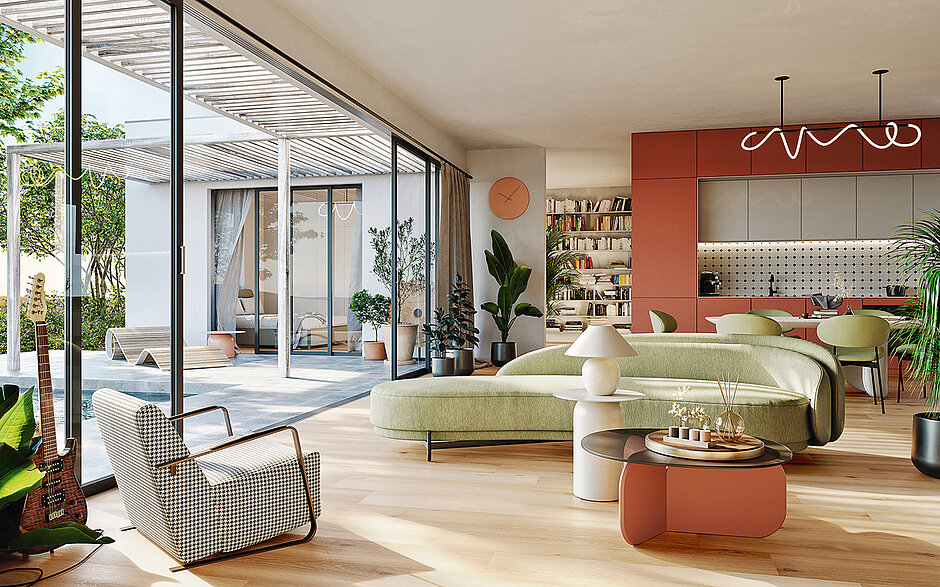 Genau das haben sich die Designer von A. Design Studio ausgedacht. Bei der Gestaltung der einzelnen Farben achteten sie darauf, dass die Anzahl der Dekore in jeder Farbe groß genug war, damit die gleichen Muster auch auf einer großen offenen Fläche kaum zu finden sind. »Arbiton Woodric« hat laut Angaben des Herstellers in jeder der verfügbaren Farben doppelt so viele einzigartige Dielen wie die gängigsten Dielen. Alle passen zusammen und sind gleichzeitig so einzigartig wie ein Naturbrett. Die gleiche große Dielenvielfalt innerhalb des Dekors gilt auch für die Dielen mit der Synchronstruktur »Real Wood Structure«. Als Ergebnis verspricht der Hersteller den Kunden, die sich für »Arbiton Woodric« entscheiden, einen Boden ohne sich wiederholende Muster sowie eine wasserdichte, extrem haltbare Oberfläche, die wie natürliches Holz aussieht.