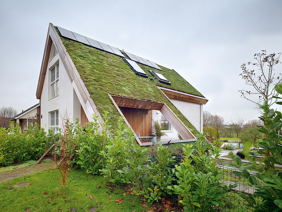 Im traditionellen Stil entworfen, besticht das anmutig designte Gebäude im niederländischen Lent durch sein markantes und bemerkenswertes Gründach. Mit einer Dachneigung von 45° verläuft es auf der einen Seite hinab bis zum Boden und über eine Terrasse, auf der man es sich jederzeit bequem und gemütlich machen kann.