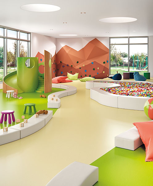 Die innovative PUR«-Oberflächenvergütung schützt den Boden zusätzlich dauerhaft gegen Verschmutzung und macht ihn extrem pflegeleicht. Die Homogenböden sind zudem chemikalienbeständig und dekontaminierbar.