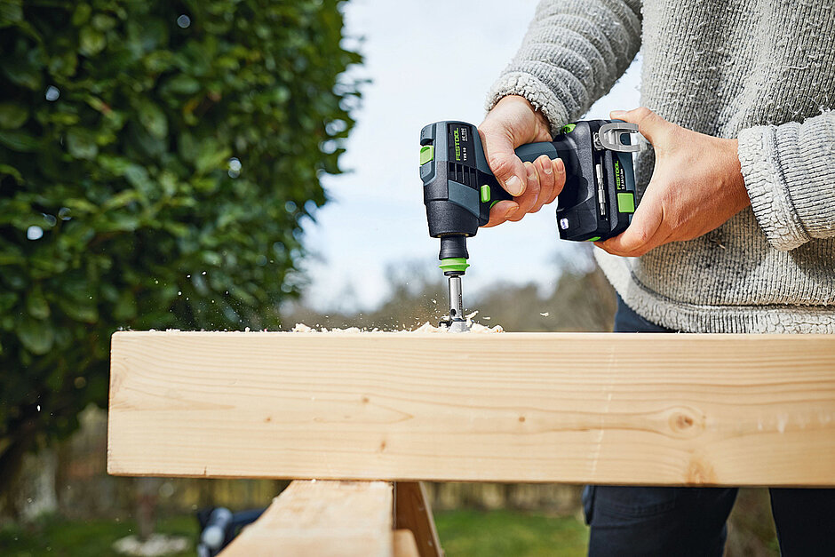 Der »CXS/TXS 18« kommt voll ausgestattet daher: Mit Bitgarage, LED-Lichtsteuerung, Gürtelclip und einem starken 18 V-Akku lässt er laut Hersteller keine Wünsche offen. Dabei lautet das Motto: Flexibel schrauben und bohren, denn alle Vorsätze der aktuellen Festool 18 Volt Akku-Bohrschrauber sind auch mit dem neuen »CXS/TXS 18« kompatibel. Hinzu kommt ein einfacher und schneller Werkzeugwechsel dank des »Centrotec«-Systems und einer »FastFix«-Schnittstelle. Auch bei kraftintensiven Arbeiten mit Forstner-Bohrern bis zu 35 mm und Schrauben bis zu 6 x 240 mm in Weichholz (Senkkopfschraube mit Teilgewinde) überzeugt die Produktneuheit nach Unternehmensangaben mit ihrer Performance. Dabei passen alle 18 Volt Akkupacks des Anbieters auf den »CXS/TXS 18« (außer Ergo-Akkupack).