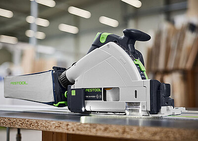 Seit vielen Jahrzehnten ist Festool für seine Handkreissägen bekannt: Anfang der 1960er-Jahre brachte Festool als Weltneuheit die Kombination Handkreissäge mit Führungsschiene auf den Markt, Anfang der 1980er-Jahre die erste Tauchsäge. So setzte der deutsche Hersteller den Maßstab beim Sägen immer wieder mit neuen Modellen weiter nach oben. Die » TS 60 K« soll diese Tradition fortsetzen. »Unsere beste Tauchsäge ist jetzt noch sicherer, denn unser einzigartiger KickbackStop schützt damit nicht nur das Werkstück, sondern minimiert sogar die Verletzungsgefahr«, so Anwendungstechniker und Schreinermeister Simon Illing und fährt fort: »Unsere neue ›TS 60 K‹ ist hochpräzise, sicherer und schafft ausgezeichnete Ergebnisse.« Der KickbackStop bewirkt, dass das Sägeblatt im Falle eines Rückschlags, ausgelöst durch das Verhaken beim Sägen oder beim Eintauchen in das Werkstück, schneller als ein Wimpernschlag stoppt. Besonders praktisch: Nach dem Auslösen des KickbackStops ist die Säge sofort wieder einsetzbar – ganz ohne Austausch und zusätzliche Kosten.