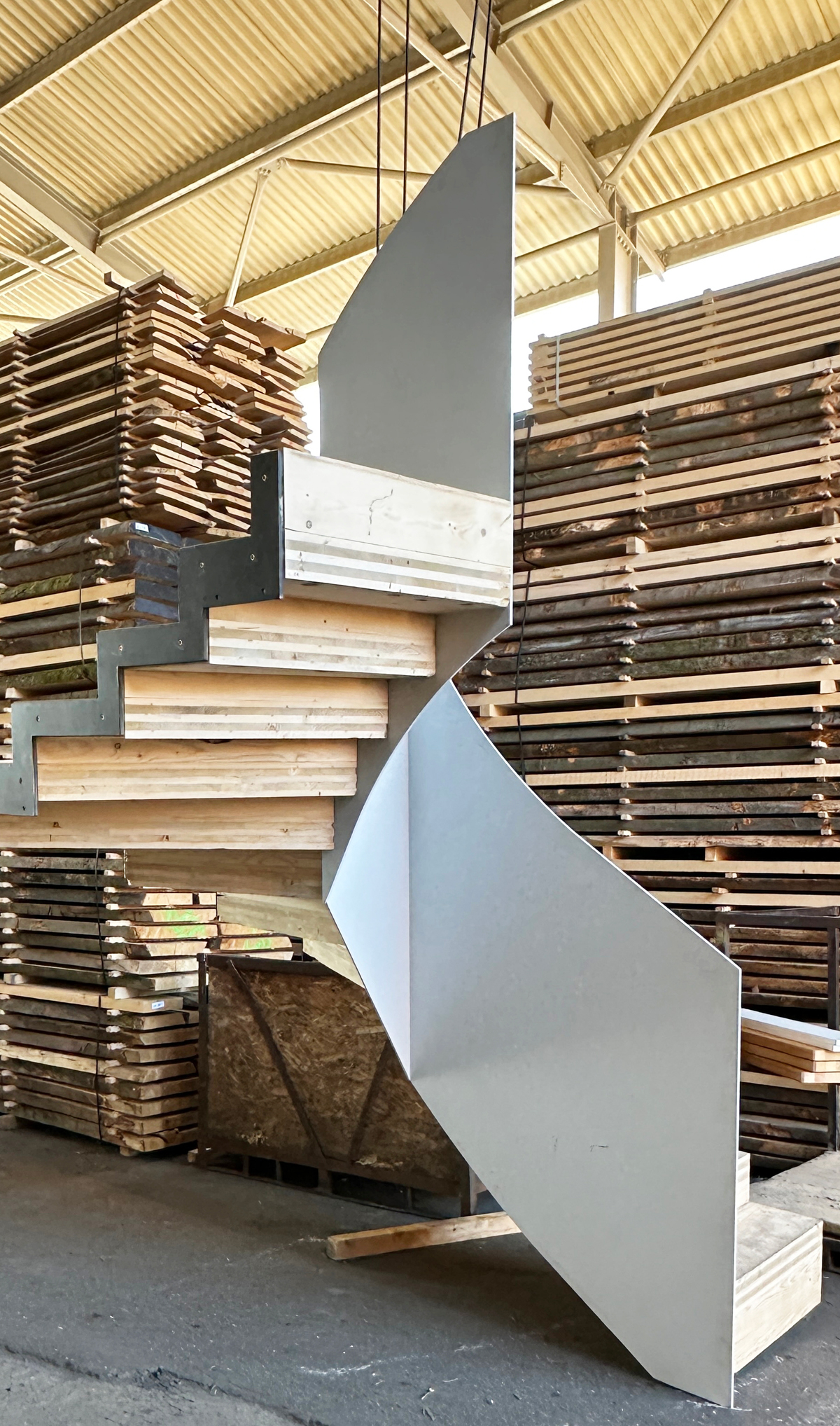Im eigenen Werk im tschechischen Veseli produziert FHS seit über 25 Jahren Treppen, und zwar als Partner des Handwerks ausschließlich für gewerbliche Kunden. Wangen-, Bolzen- oder Faltwerktreppen, Stahlwangen- und Stahlholmtreppen, Ganzglas-Treppen oder Treppen mit Stufen und Geländern aus Glas, Spindeltreppen und »Flying Steps«, Stufen und Geländer, Aussentreppen und Balkongeländer – die Produktvielfalt ist groß und orientiert sich an den Wünschen der Kunden und Architekten. Auch Großprojekte können in allen Materialien umgesetzt werden. Im klimatisierten Lager steht Ware für mehr als 100 Treppen in allen gängigen Holzarten zur Verfügung. So sind Anforderungen schnell zu erfüllen! Auch der eigene, EN-1090 zertifizierte Stahlbau trägt zur Flexibilität bei.