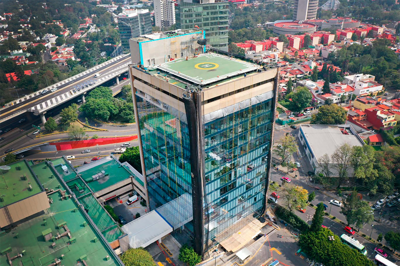 So startete der Bauherr eines neuen Krankenhauses – er ist eines der größten privaten mexikanischen Gesundheitsunternehmen – ein Expansions- und Entwicklungsprogramm, wie es in der Geschichte des Gesundheitswesens in Mexiko noch nie dagewesen ist. Teil davon ist die Renovierung des Krankenhauses im mexikanischen Gebiet El Pedregal, das sich im Stadtbezirk Tlalpan im Süden von Mexico City befindet. Das Projekt umfasst zwei Krankenhaustürme mit einer Höhe von 50 m und einen dritten Turm mit einer Höhe von 27 m. Dabei werden die Räumlichkeiten um mehr als 35.000 m² erweitert und der Komplex umgestaltet. Wichtiger Projektbestandteil ist die Umgestaltung und Erneuerung der Fassade. Die Gesamtfassadenfläche beträgt rund 20.000 m².