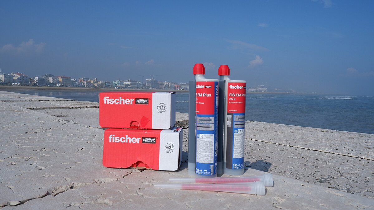 Für die strukturelle Verstärkung und Festigung der Pier-Elemente wurde das Fischer-Injektionssystem »FIS EM Plus« verwendet, appliziert mit dem »FIS DM S Pro«-Auspressgerät. Der Epoxidharzmörtel gewährleistet hohe Tragfähigkeit in gerissenem und ungerissenem Beton. In maritimer Umgebung bietet er auch unter ständiger Feuchtigkeit und Salzwassereinwirkung dauerhafte Sicherheit und Beständigkeit – mit einer bewerteten Nutzungsdauer gemäß ETA von 100 Jahren. »In einem Umfeld wie dem der Schifffahrt, in dem Feuchtigkeit und Salz die Strukturen ständig angreifen, ist es notwendig, mit einem Produkt zu arbeiten, das seine Tragfähigkeit auch unter anspruchsvollen Bedingungen, wie in feuchten und wassergefüllten Löchern sowie in Gegenwart von Meerwasser, gewährleisten kann«, erklärt Mario Allasia, Vertriebstechniker bei Fischer Italia.