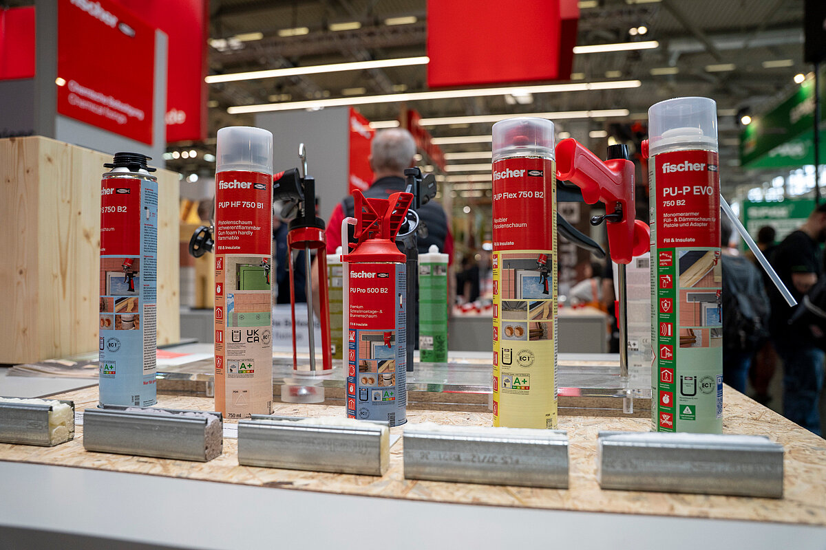Große Aufmerksamkeit erhielt das Injektionssystem »FIS EM Plus« zum Einkleben von »FIS A«-Ankerstangen oder oberflächenbündig eingeklebten »FIS IG«-Innengewindeankern. Es ermöglicht die Übertragung hoher Zuglasten und eine große Anwendungsvielfalt im Ingenieurholzbau. Auf reges Interesse stieß auch das Bauchemie-Sortiment zum Verfüllen, Dichten und Kleben. Die PU-Schäume sowie Klebstoff- und Dichtstofflösungen beschleunigen Arbeitsabläufe, erhöhen die Verarbeitungssicherheit und garantieren laut Fischer langlebige, saubere Ergebnisse. Besonders gefragt: der neue PU-P-Evo-Schaum, den professionelle Anwender aufgrund eines Isocyanatanteils von unter 0,1 Prozent ohne PU-Sicherheitsschulung verarbeiten können. Schnellmontage- und Brunnenschäume mit dem neuen anwenderfreundlichen »FixAdapter« unterstrichen den Fokus auf Sicherheit, Komfort und Effizienz.