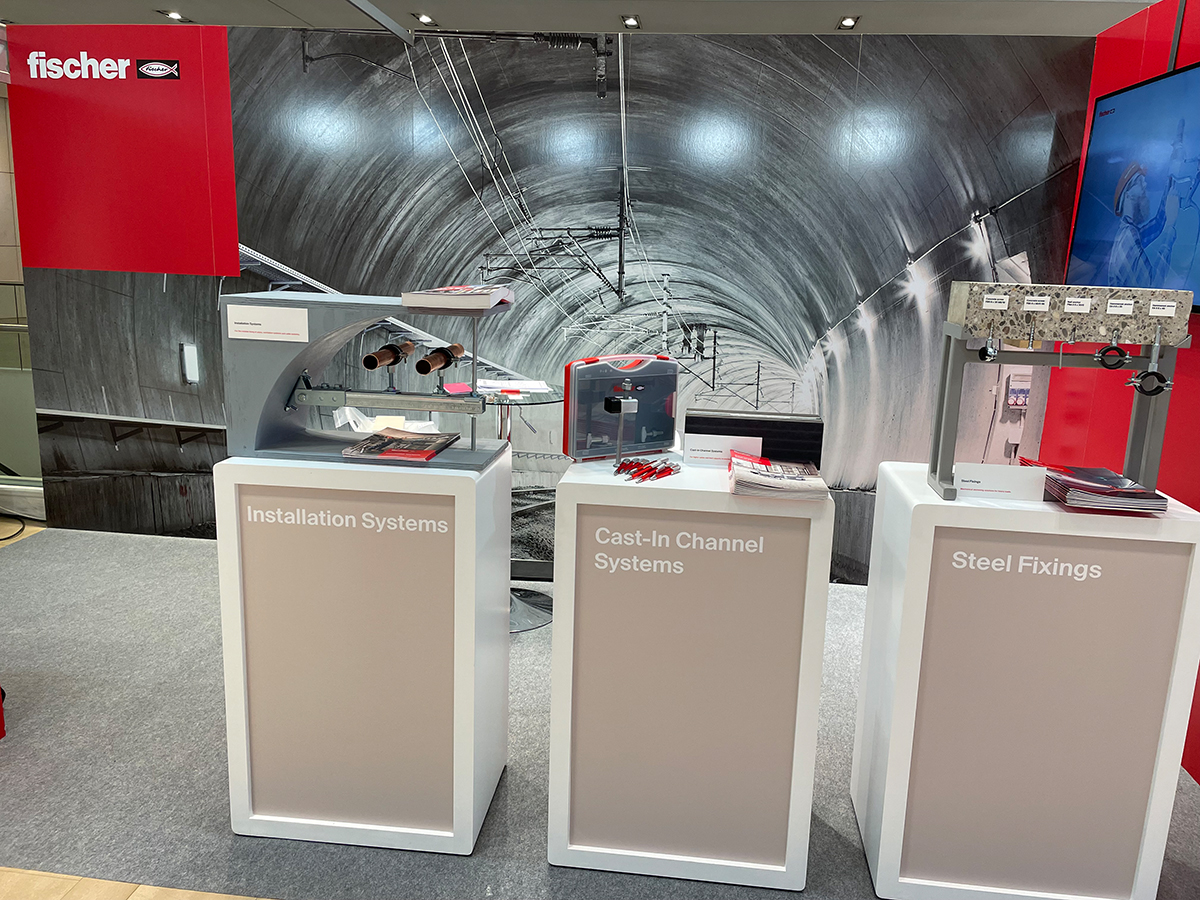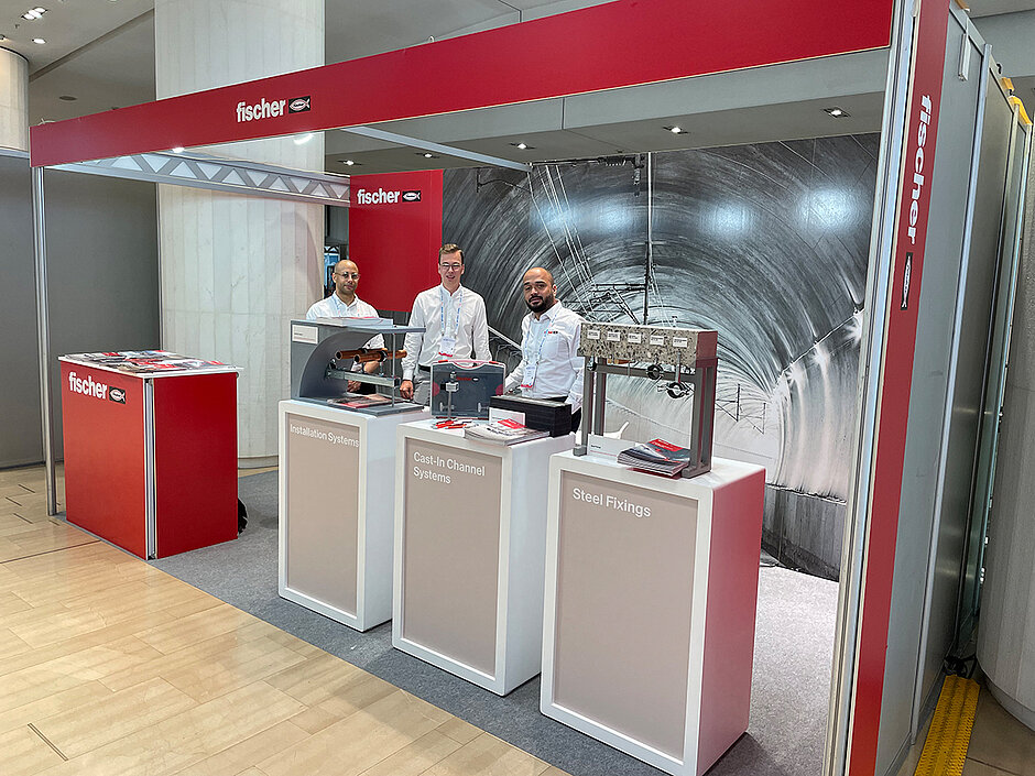 Ebenfalls am Messestand gezeigt wurde die fischer FiXperience Software, mit der sich die Befestigungslösungen kompletter Projekte und einzelner Anwendungen zielgerichtet und kostenoptimiert planen lassen. Darüber hinaus wollten viele Besucher mehr über den fischer Nagelanker FNA II, das fischer Cast-In Channel System sowie über fischer Installationssysteme erfahren. Auch über das Thema Nachhaltigkeit tauschten sich die fischer Experten mit den Konferenzbesuchern rege aus. So gab es etwa einen regen Austausch zum fischer Injektionsmörtel FIS EM Plus. Die Bewertung (ETA) gewährleistet eine Nutzungsdauer von 100 Jahren für nachträgliche Bewehrungsanschlüsse und Verankerungen in gerissenen Beton. Ein externes unabhängiges Gutachten des IEA Stuttgart bestätigt sogar die Nutzungsdauer von Verankerungen bis 120 Jahre. An Produkten zu sehen waren Neuheiten und Klassiker. Die fischer Befestigungs- und Systemlösungen aus nicht rostendem und hochkorrosionsbeständigem Stahl sind geeignet für die oftmals oder zeitweise in Straßen- und Bahntunneln herrschende hochkorrosive Atmosphäre, aber auch sicher bei Brand sowie ermüdungsrelevanten, seismischen und stoßartigen Einwirkungen.