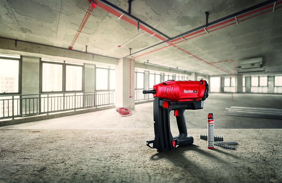 Überall dort, wo in kurzer Zeit sehr viele Befestigungen erfolgen sollen, ist die einfache und schnelle Direktmontage mit dem gasbetriebenen Setzgerät FGC 100 möglich und in allen Richtungen, auf Böden sowie an Wänden und Decken möglich. So lassen sich im Elektrohandwerk mit dem FGC 100 beispielsweise Leitungen, Rohre, Kabel und Klemmen zügig in Beton, Kalksandstein, Vollziegel und Stahl fixieren. Im Trocken- bau beschleunigt das Werkzeug das sichere Befestigen von Profilen zum Einbau von Trennwänden oder abgehängten De- cken. Zusätzlich eignet sich das Tool für Stahl-Stahl-Verbindun- gen im Stahlbau, wie etwa das Anbringen von Stahlprofilen oder Blechen an Stahlunterkonstruktionen. Eine sichere Wahl ist das Gerät zudem für temporäre Befestigungen und zum Einleiten leichter Lasten, etwa im Schalungsbau.