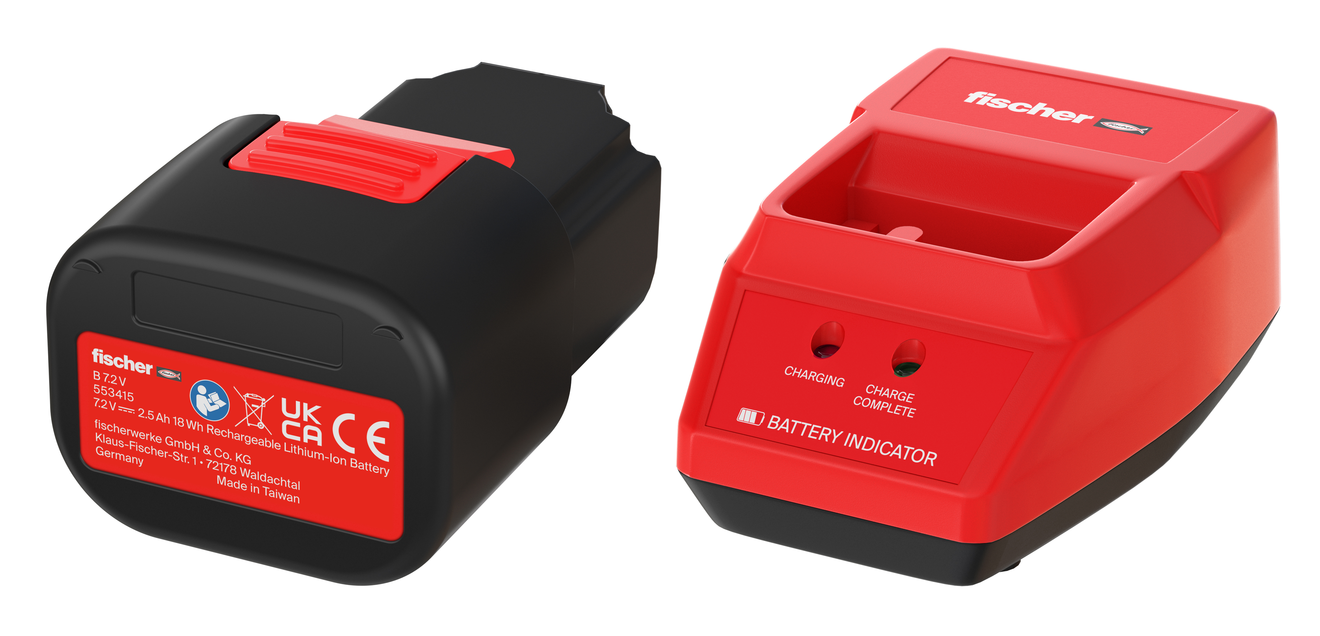Die Nägel schließen wahlweise bündig mit der Oberfläche ab oder werden versenkt. Der Schalter zum Einstellen der Setztiefe unterstützt den Monteur dabei, das Tool auf verschiedene Be- festigungsvorhaben exakt einzustellen. Da das Gerät beson- ders gut ausbalanciert sowie bohr- und staubfrei in der Anwen- dung ist, ermöglicht es die sichere und gesundheitsschonende Überkopfmontage bei Befestigungen an der Decke. Der spezi- elle Sicherheitsmechanismus sorgt dafür, dass nur dann ein Na- gel gesetzt wird, wenn das Nasenstück des Geräts gegen die Arbeitsoberfläche gedrückt und gleichzeitig betätigt wird. Eine spezielle Kappe auf der Gaskartusche schützt zusätzlich davor, dass während des Transports versehentlich Gas austritt. Das Setzgerät ist mit einem leistungsstarken wiederaufladbaren Akku mit Li-Ionen-Power ausgestattet, der mehr als 8.000 Be- festigungen mit einer Ladung ermöglicht. Der einfach zu hand- habende Nagelschieber erleichtert die schnelle Nagelzufüh- rung. Mit der Akku-LED-Status-Anzeige werden die verblei- bende Batterieleistung und der Gerätestatus angezeigt. Diese Vorteile steigern die Produktivität und verhindern einen Still- stand auf der Baustelle. Außerdem sorgt der zweite Akku dafür, dass Anwender ihre Arbeit ohne Unterbrechung fortsetzen können. Sollten einmal beide Akkus leer sein, ermöglicht eine 10-minütige Ladung, mindestens 300 weitere Nägel zu setzen. Die Batterie vollständig aufzuladen, dauert unter Standardbe- dingungen 90 Minuten. Die volle Leistung ist im Temperaturbe- reich von -7°C bis +50°C gewährleistet.