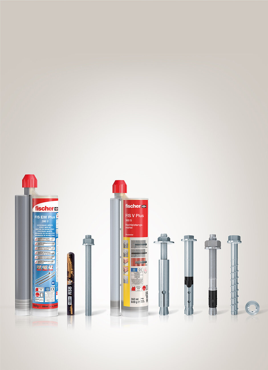 Als Befestigungsspezialist bietet fischer gleich mehrere Lösungen für seismische Befestigungen an. In der Gruppe der chemischen Anker sind der Universalmörtel FIS V Plus, der Betonspezialist FIS EM Plus und der Superbond FIS SB (auch als Reaktionspatrone RSB) zu nennen. Diese Injektionsmörtel werden mit Systemkomponenten, wie den fischer Ankerstangen FIS A und RG M, verarbeitet. Darüber hinaus sind im fischer Sortiment auch einige Stahlanker verfügbar, die sich für seismische Verankerungen eignen. Dazu gehören die Betonschraube UltraCut FBS II, der Bolzenanker FAZ II, der Hochleistungsanker FH II sowie der Zykon-Hinterschnittanker FZA. Mit diesen chemischen und mechanischen Lösungen deckt fischer alle Lastbereiche ab.
