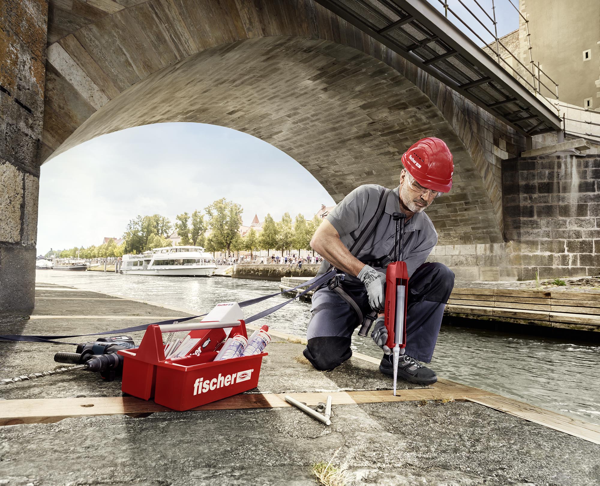 Die große Auswahl an passenden Systemkomponenten erweitert zusätzlich das Anwendungsspektrum. Neben den Ankerstangen, Innengewindeankern und Injektions-Ankerhülsen für Befestigungen in Beton,Porenbeton und Mauerwerk im Innen- und Außenbereich gibt es noch ein großes Spezialsortiment für zahlreiche Spezialanwendungen. Dazu zählen das Abstandsmontagesystem Thermax 12 und 16 zur Befestigung durch Wärmedämmverbundsysteme (WDVS) hindurch im Traggrund nahezu ohne Wärmebrücken, der fischer Verblendsanieranker VBS 8 zur nachträglichen Vernadelung von zweischaligem Mauerwerk und der Wetterschalen-Sanieranker FWS II für die nachträgliche Sicherung von dreischichtigen Außenwandplatten aus Beton. Zusammen mit den fischer Beton-Beton-Schubverbindern FCC-H ist der FIS V Plus das schnelle und wirtschaftliche System mit bauaufsichtlicher Zulassung für die Bauwerkssanierung. Zudem bietet fischer den Bewehrungsanker FRA an. Dieser Betonstabstahl mit angeschweißtem metrischen Anschlussgewinde aus nicht rostendem Stahl in den Größen M12 – M20 nutzt im Verbund mit dem FIS V Plus die Tragfähigkeit des Verankerungsgrunds voll aus und kann sehr hohe Zuglasten in den Beton, bei gleichzeitig sehr geringen Randabständen, einleiten.