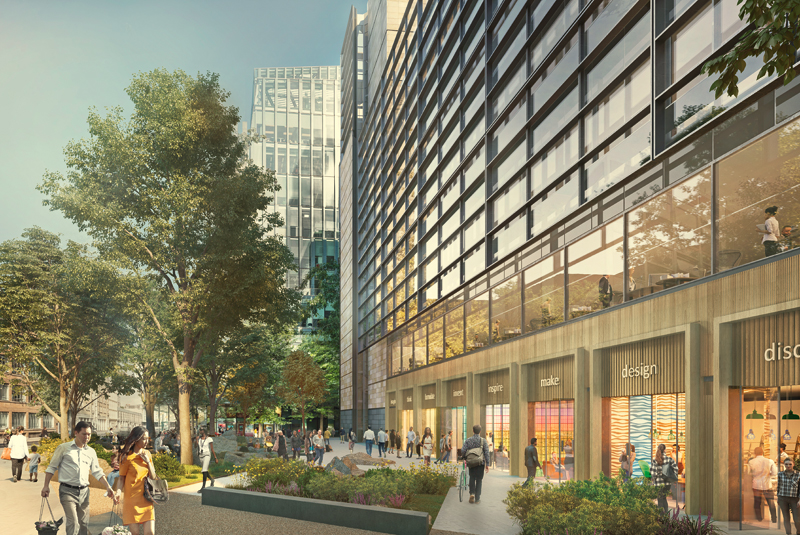 Bei der Neugestaltung konzentriert sich die British Land Company PLC auf die aktuellen Bedürfnisse der Gebäudenutzer und auf die Ansprache verschiedener Kundengruppen. Zudem wird der ursprüngliche Charakter des in den 1990er-Jahren entstandenen Bauwerks beibehalten und gleichzeitig in die Moderne transferiert. Maßgeblich ist hierfür die Gestaltung der Gebäudehülle. Den Auftrag hierfür erhielten die Fassadenspezialisten der Josef Gartner GmbH mit Sitz in Gundelfingen, Bayern, die zur Permasteelisa Group mit Hauptsitz in Italien gehört. Dabei galt es, das altbekannte Gesicht des Objekts zu bewahren und gleichzeitig für einen frischen, modernen Auftritt zu sorgen. Auf einer Fläche von insgesamt rund 11 000 m2 wird die einschalige Fassade aus Glas und Naturstein saniert und erweitert.