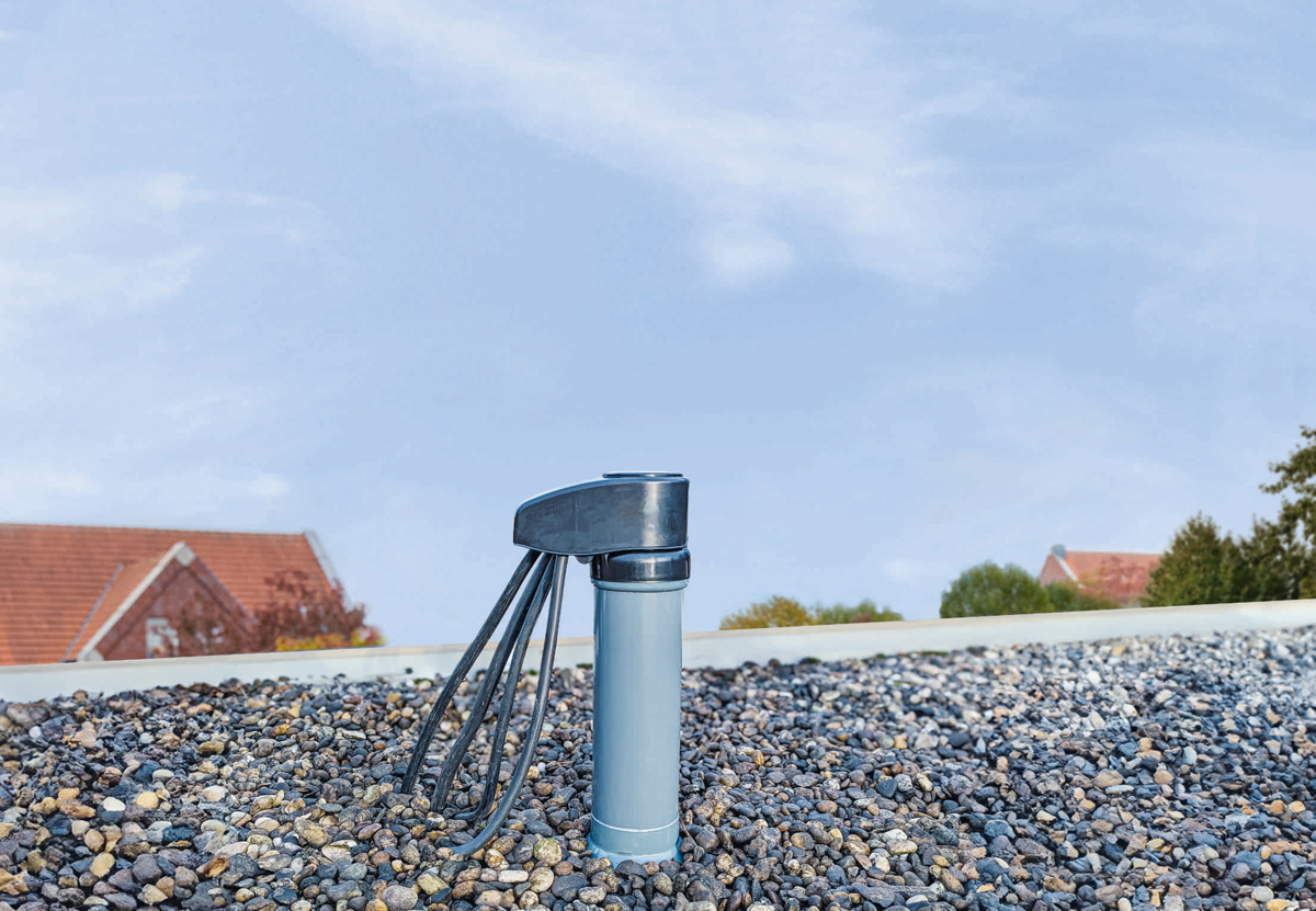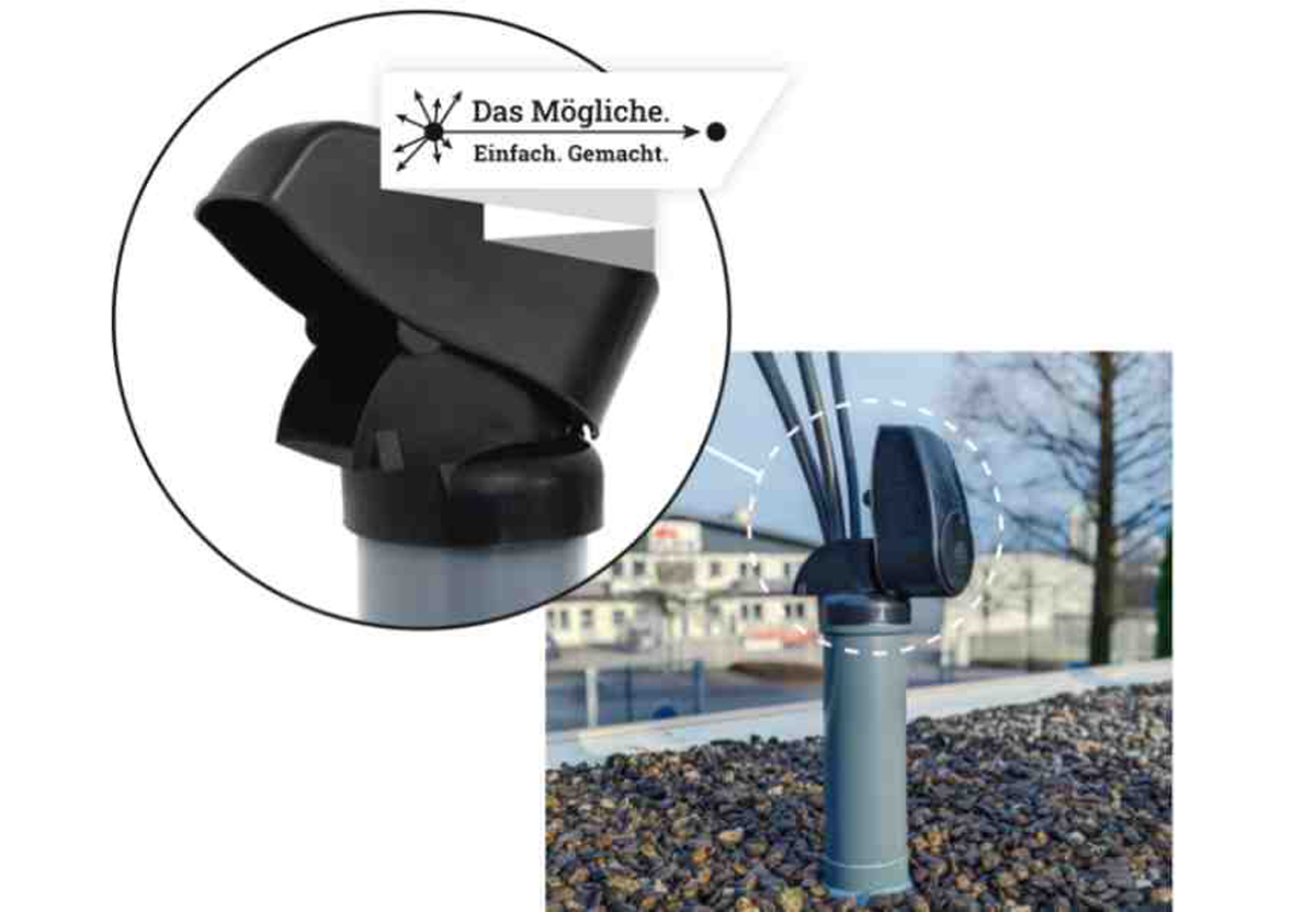 Bei der Montage solcher Anlagen auf Dächern geht es nicht nur darum, die Module standsicher zu installieren. Auch Kabel und Leitungen müssen witterungsbeständig und bruchsicher durch das Dach geführt werden. Das gilt nicht nur im Zusammenhang mit Photovoltaik, sondern auch bei der Nutzung von Klimaanlagen, Wärmepumpen oder Solarthermie. Hierfür bietet Fleck aus Datteln den Flachdach-Schwanenhals mit Klappelement an. Dieses vereinfacht die Durchführung starrer Leitungen.