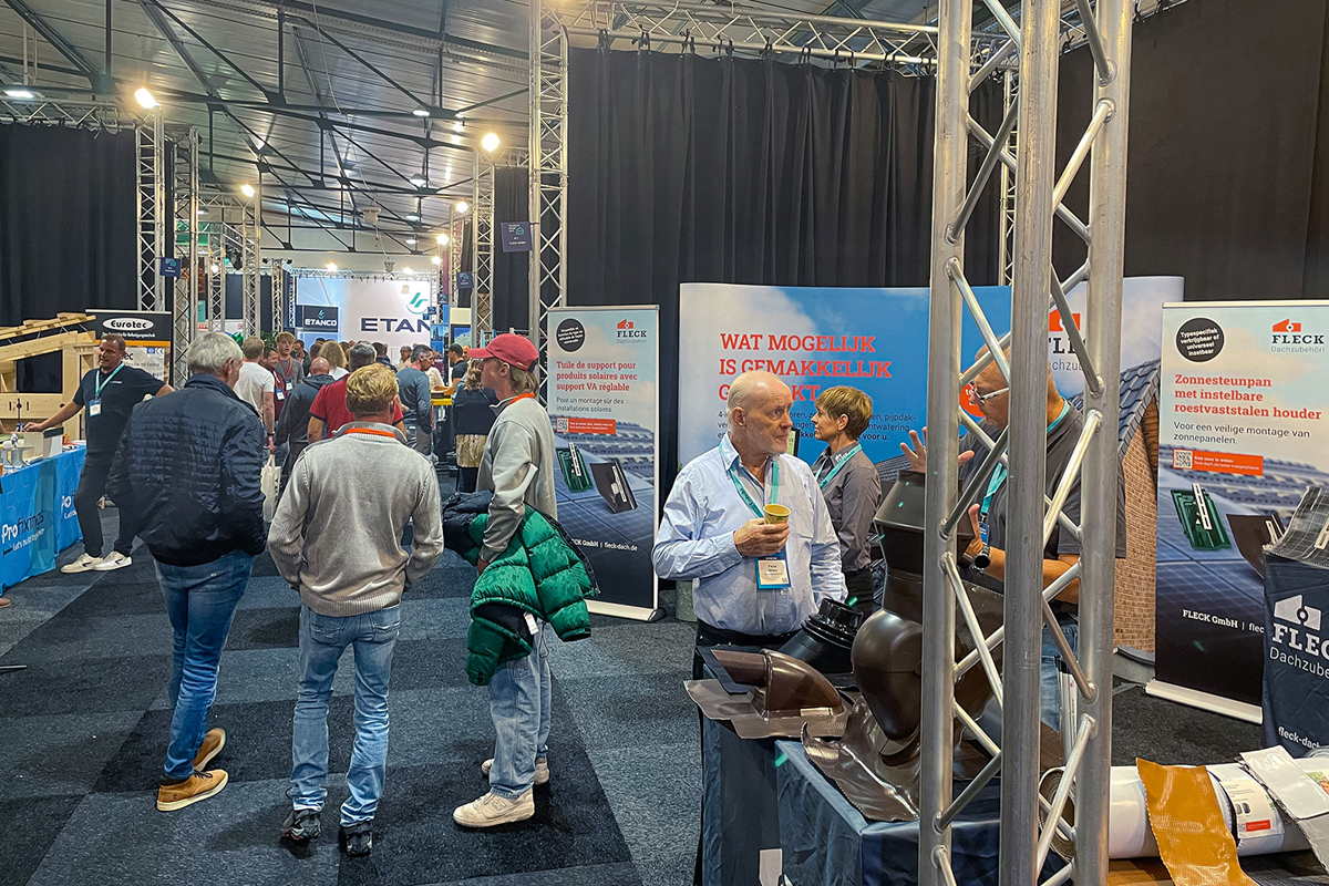 Mit Britta Rugulies, tätig im Bereich Produktmanagement und in der Anwendungstechnik sowie Erik Disselbeck, Gebietsverkaufsleiter Deutschland Süd-West und Benelux, präsentierte sich Fleck erstmals auf dem Belgian Roof Day in Brüssel. Vor- und ausgestellt wurden zahlreiche Bestseller aus dem umfangreichen Produktprogramm des Unternehmens. Dazu zählten diverse Solarprodukte sowie insbesondere der »4 in 1 Flachdachlüfter« als Sanitärlüfter in der Dimension DN 90. Fleck liefert dieses Format speziell für den Markt Benelux mit Unterteil und passendem Systemrohr jeweils in DN 90 inklusive dem so genannten »4 in 1 Flachdachlüfter«. »Insgesamt haben knapp 100 Architekten, Planer, Dachhandwerker und Händler aus dem Bereich Bedachungen mit uns Gespräche geführt«, bilanziert Erik Disselbeck.