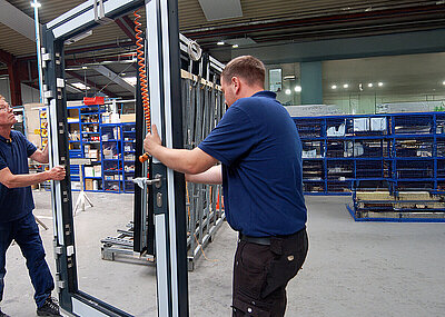 Gefertigt werden diese aus einem speziellen Strangpressprofil, von dem auf einer hochpräzisen Taktsäge dünne Scheiben abgetrennt werden. Die Schnittgeometrie aller Scheiben ist gleich. Der Clou hierbei ist laut Foppe ein mittig verlaufender, einseitig offener Schlitz, der über den Mittelpunkt der Scheibe hinausgezogen ist. Dieser Schlitz ermögliche es, die Scheiben auf Befestigungsschrauben von bis zu 12 mm Durchmesser seitlich aufzuschieben. In der Endlage drehen sich die Scheiben der Schwerkraft folgend mit dem offenen Schlitzende nach unten.