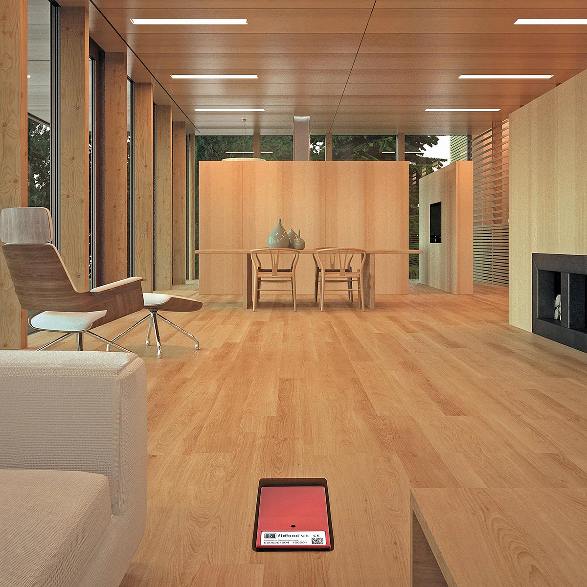 Bei der »fidbox« handelt es sich um ein Messgerät, das einfach und unkompliziert direkt im Parkettboden verbaut wird. Mittels Sensoren misst und zeichnet die Neuheit regelmäßig die Temperatur sowie die relative Luftfeuchtigkeit von Parkettboden und Unterboden auf. Die Daten sind via Smartphone abrufbar; so hat man das Umgebungsklima jederzeit im Blick. Mit einfachen Maßnahmen wie Lüften, Heizen oder Luftbefeuchten kann dann rasch reagiert werden, um Probleme von vornherein zu vermeiden.