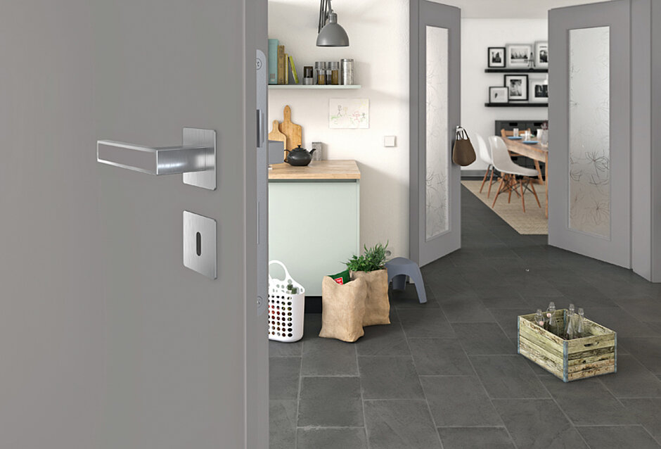 Neben Premiumkante und G-Tec gibt es weitere neue Produkte bei Garant. »Black and White« könnte man die Ausführung nennen, bei der weiße Türen mit schwarzen Beschlägen ausgestattet sind. Ebenso sind schwarze Inlays für den Schiebetürbeschlag »Line« und den Beschlag »Quadral« erhältlich. Ein modernes und stilvolles Wohnen wird von den schwarzen Lisenen dieser Serie unterstützt. Mit den neuen Gläsern »Stripes« und »Strato« werden strahlende Akzente gesetzt.
