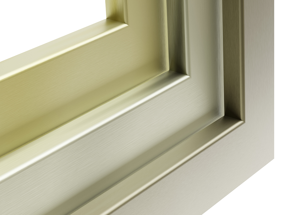 Gealan-acrylcolor-Fensterprofile ermöglichen die Gestaltung von Fassaden in vielen Trendfarben: die Farbpalette hat neun Standard-Farbtöne, außerdem gibt es 50 weitere Sonderfarben auf Anfrage. Gealan hat nach eigenen Angaben als einziger Systemgeber PMMA-veredelte Oberflächen in Metallic-Farbtönen im Sortiment und mit DB 703 und Silber sogar zwei in der Standard-Farbpalette. Inzwischen konnten Gealans Produktentwickler noch eine Erweiterung der Metallic-Töne in Gealan-acrylcolor verkünden. Neu im Sortiment sind nun die Farbtöne Gold, Bronze und Perlbeige ähnlich RAL 1035 mit Metallic-Effekt.