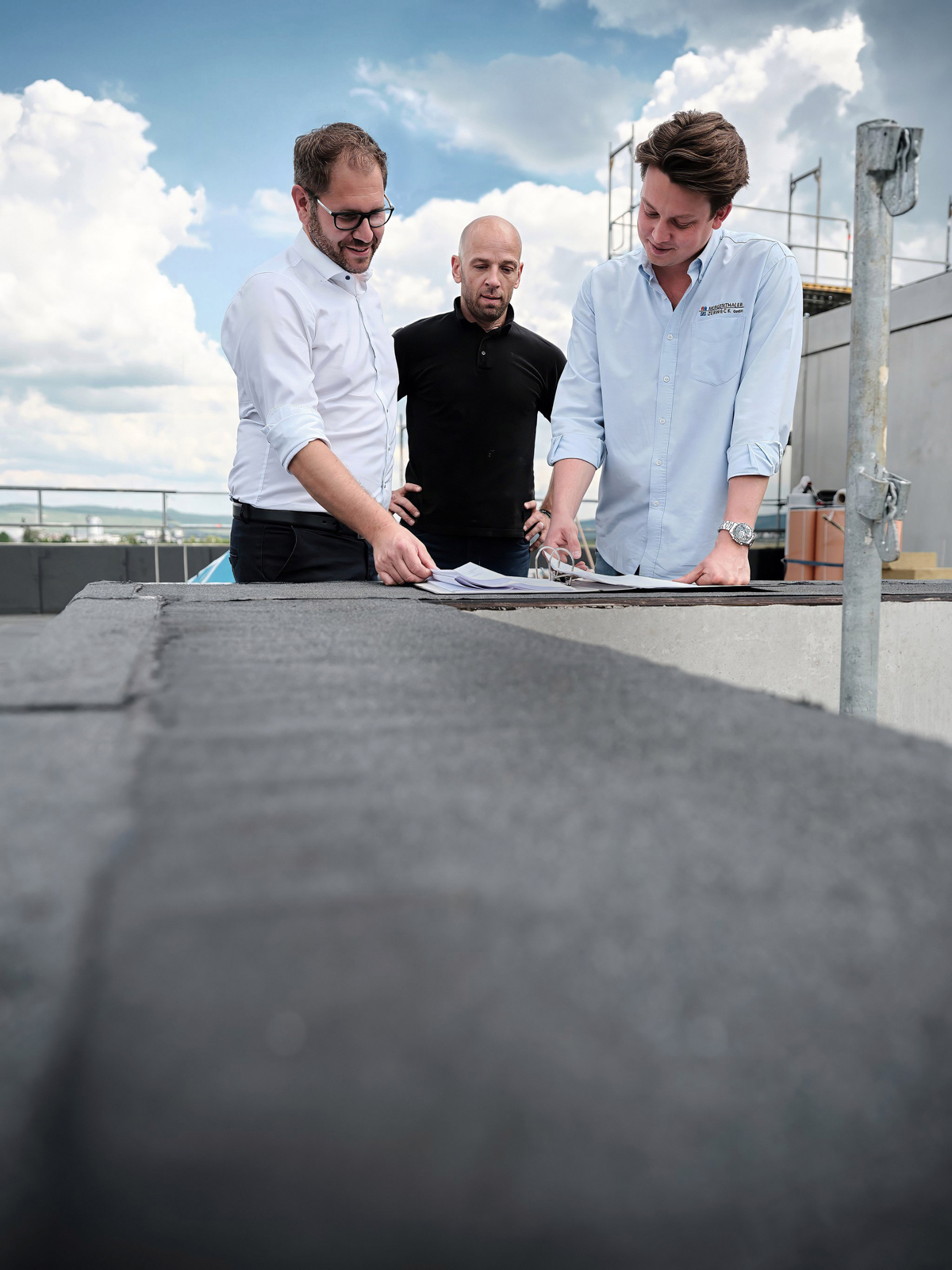 Zu Baubeginn gab es für die Monteure einen Vor-Ort-Termin mit dem Geberit Verkaufsberater. Hierbei wurden die Pläne und Montagehinweise besprochen – zum neuen »Mapress Therm« ebenso wie zu anderen Geberit Systemen, wie etwa »Geberit Pluvia« und »Silent-PP«, die bei der Firma AMF in der Dachentwässerung installiert werden sollten. »Während der Bauphase konnten wir uns bei technischen Fragen immer an Geberit wenden«, erklärt Danijel Pupic zufrieden.