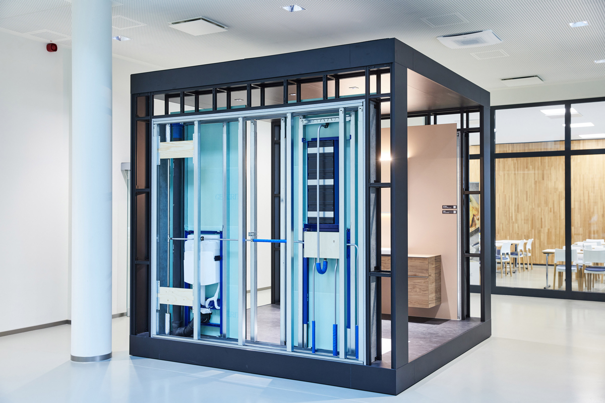 Im Rahmen der umfangreichen Investitionen in den Standort sind neben den Schulungs- und Ausstellungsräumen ebenfalls ein neues Verwaltungsgebäude sowie modernisierte und erweiterte Produktionsanlagen entstanden. Die Investitionen sind ein klares Bekenntnis von Geberit zum Standort Lichtenstein, wo der Sanitärexperte seit 1992 Installationselemente und Register produziert. Aktuell werden dort die Produkte »Duofix« und »GIS IV« für die industrielle Vorfertigung hergestellt.