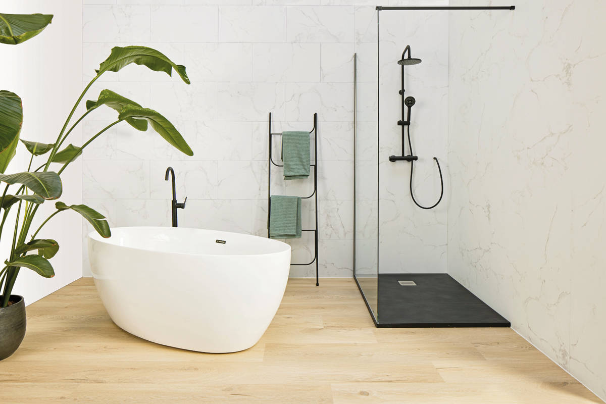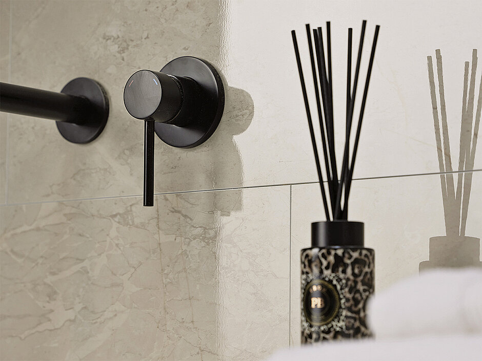 Die neue Wandverkleidung »Mural Revela« ist trotz des robusten Produktaufbaus sehr leicht und lässt sich mühelos schneiden und verarbeiten. Dank des stabilen Nut- und Federsystems ist eine einfache Montage ohne aufwändiges Verfugen gewährleistet – auch auf vorhandenen Fliesen. Lärm und Bauschutt entfallen somit komplett, da der alte Fliesenbelag nicht aufwändig entfernt werden muss. So lassen sich die Wandverkleidungen in Badezimmern in der Regel innerhalb von 24 Stunden komplett verarbeiten – ohne lange Ausfallzeiten und im Vergleich zu klassischen Wandfliesen aus Keramik bis zu dreimal schneller.