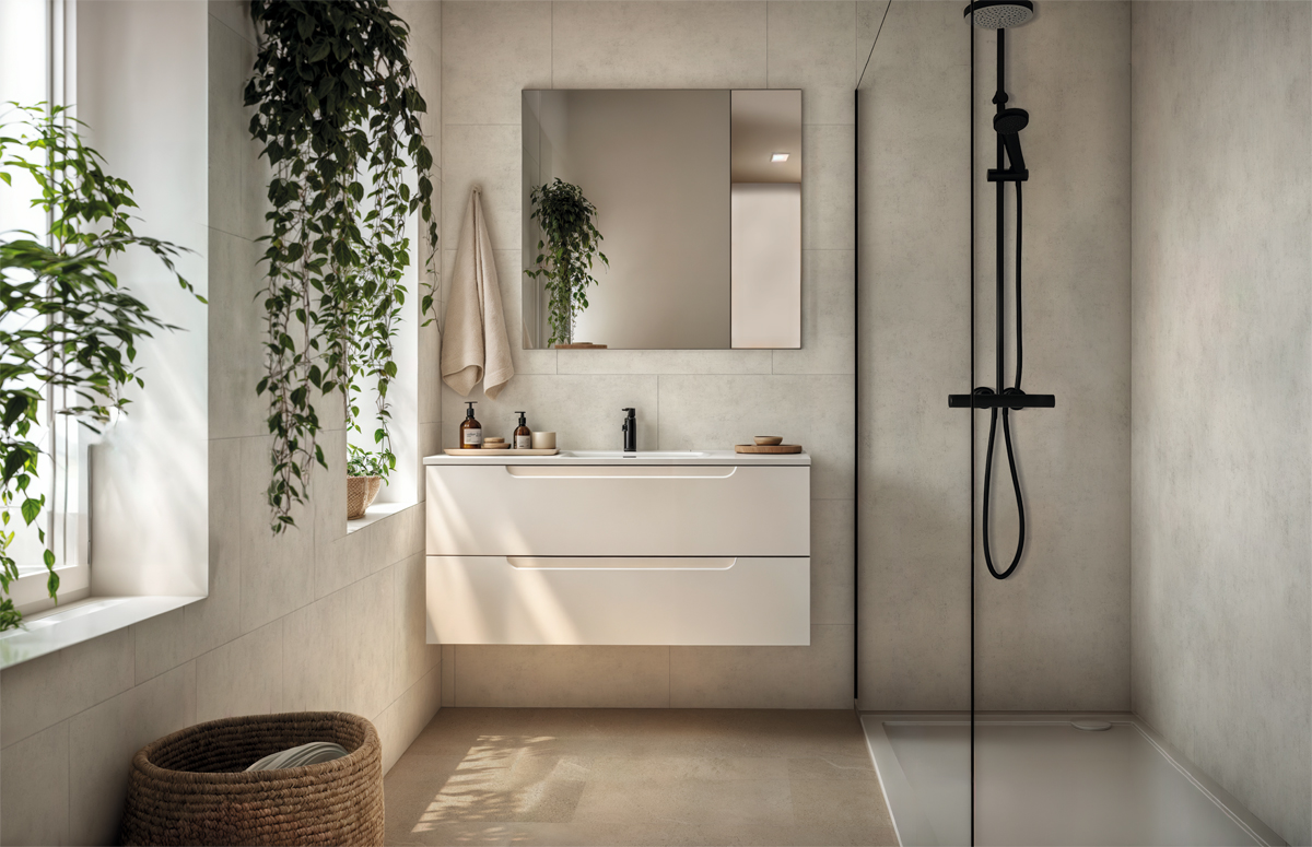 Die Paneele der neuen Wandverkleidung »Mural Revela« sind trotz des robusten Produktaufbaus sehr leicht und kompakt – so lassen sie sich mühelos schneiden und verarbeiten. Das stabile Nut- und Federsystem ermöglicht eine einfache Verlegung ohne aufwendiges Verfugen auch auf vorhandenen Fliesen und sorgt für ein nahtloses, professionelles Finish. Lärm und Bauschutt entfallen somit komplett, da der alte Fliesenbelag nicht aufwendig entfernt werden muss. So lassen sich die Wandverkleidungen in Badezimmern in der Regel innerhalb von 24 Stunden komplett verarbeiten – ohne lange Ausfallzeiten und im Vergleich zu klassischen Wandfliesen aus Keramik bis zu dreimal schneller.