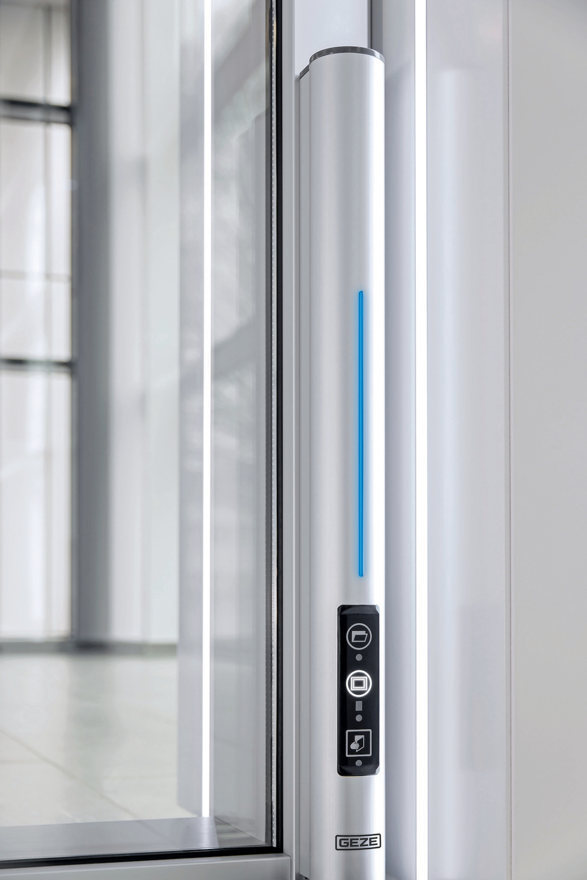 Der »F 1200+«-Antrieb lässt sich über die »IQ box KNX« vernetzen. Die Fenster können dank der »KNX«-Kompatibilität des Antriebs intelligent in die übergeordnete Gebäudeautomation eingebunden und mit verschiedenen Lüftungsszenarien versehen werden. Gleichzeitig ermöglicht der »F 1200+« dem Nutzer im Raum das Ansteuern des Fensters über ein integriertes Bedienfeld direkt am Antrieb. Bei der manuellen Bedienung wird über einen Näherungssensor das Bedienfeld aktiviert. Das intuitive Bedienkonzept ermöglicht es, dass auch Nutzer ohne vorherige Einweisung, wie z. B. Hotelgäste, damit sicher umgehen können. Dank optischer Status- und Sicherheitsmeldungen wird über die integrierte LED-Anzeige eine erweiterte Nutzungssicherheit gewährleistet. Optisch sorgt das Bedienfeld für ein modernes Erscheinungsbild im Raum und ersetzt den klassischen Fenstergriff.