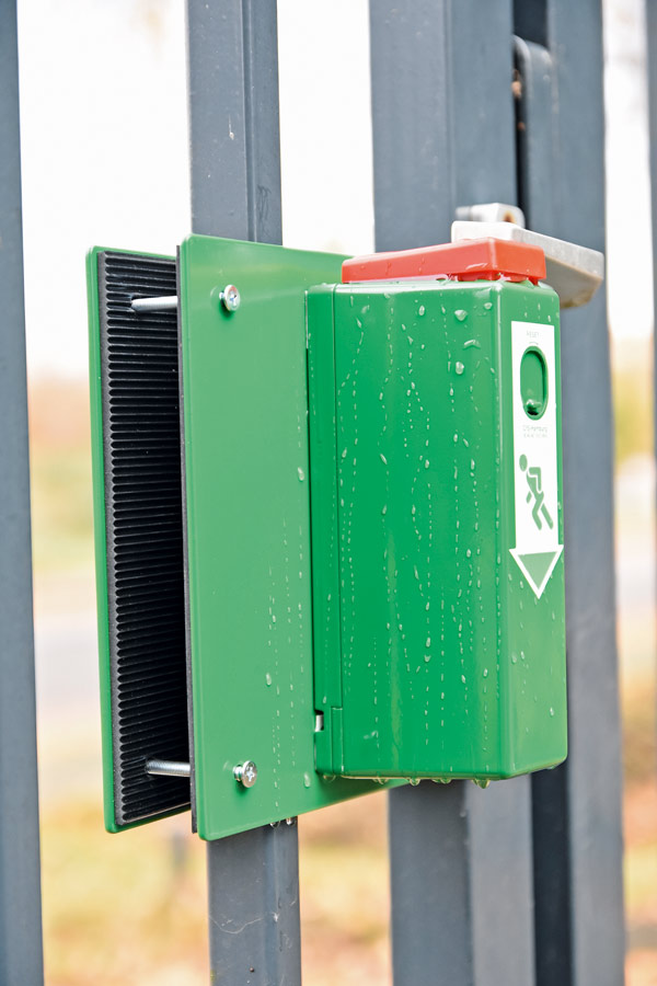 Obwohl der klassische Fluchtweg aus einem Gebäude heraus ins Freie führt, gibt es immer wieder Anforderungen, bei denen die Einhand-Türwächter auch in Außenbereichen eingesetzt werden müssen. Extra für diese Anwendung hat der Hersteller eine Lösung in Form einer spritz- und strahlwassergeschützten Umrüstung der Geräte erarbeitet. Mit dieser Umrüstung, die als zusätzliche Position beim Bestellvorgang mit angegeben wird, bekommt der Einhand-Türwächter die Schutzart IP 45. Auch Einsatzorte und Umgebungen mit hoher Luftfeuchtigkeit, wie Hallenbäder oder Saunabereiche, können von dieser anwendungsorientierten Lösung profitieren.