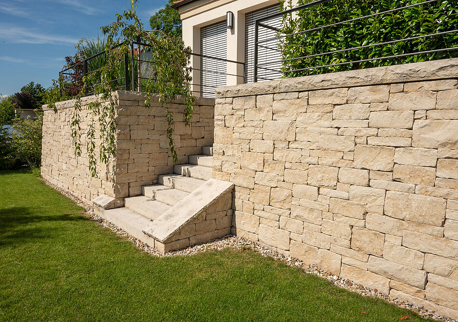 Das »Limesmauerwerk, getrommelt« sowie das »Toscamauerwerk, gespalten« sind nach Unternehmensangaben besonders attraktiv. Die Steine haben für eine schnelle Verlegung gesägte Lager- und Stoßfugen, eine gespaltene Vorder- und Rückseite und bei dem »Limesmauerwerk« sind alle Kanten rustikal abgeschlagen. Sowohl »Limes«- als auch »Toscamauerwerk« werden für versetztes Mauerwerk in den Höhen 8, 16 und 24 cm produziert und sind in der Steintiefe 22 cm oder als Vormauerung in 9 bis 11 cm Tiefe in Jura-Marmor und Fränkischem Muschelkalk verfügbar.