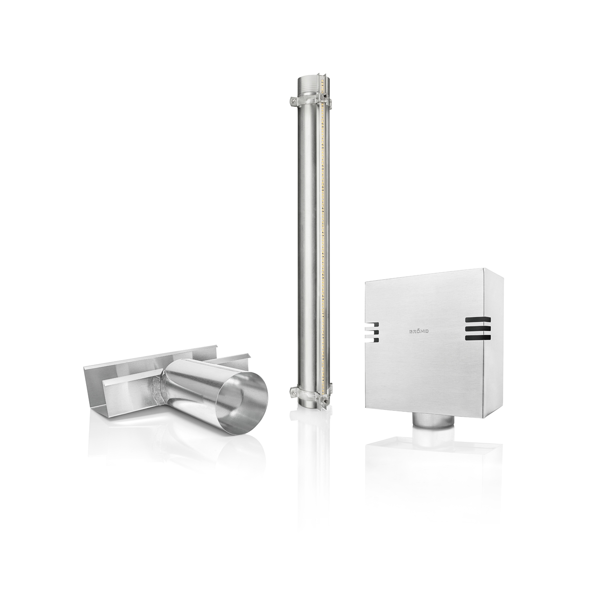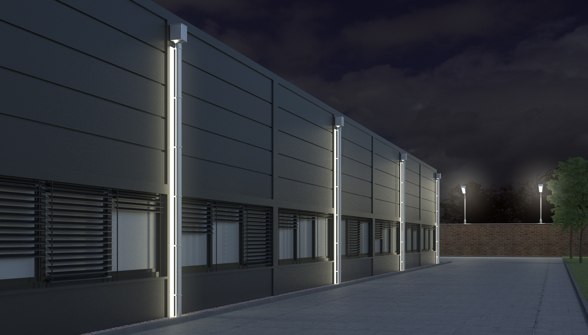 Fassade und Entwässerung effektvoll in Szene zu setzen, ist mit dem von Grömo neuentwickelten LED- Beleuchtungssystem zur Hinterleuchtung von Regenfallrohren ab sofort möglich. Dafür werden voll vergossene, lineare LED-Lichtlinien im Aluminiumprofil eingesetzt. Sie sind mit Steckverbindern an beiden Enden versehen und lassen sich durch entsprechende Montagewinkel einfach montieren. Die integrierten LED-Linearleuchten sind einkanalig, dimmbar und sorgen für strahlende Helligkeit und gute Farbwiedergabe. Das LED-Beleuchtungssystem kann an metallischen Fallrohren aus Zink und Zink-kompatiblen Materialien montiert werden. Darüber hinaus gibt es die Beleuchtung auch in »Grömo Alustar Anthrazit TX«. Die Montage ist auf bis zu 11,5 m möglich, bei zwei Zuleitungen sogar fast doppelt so hoch.